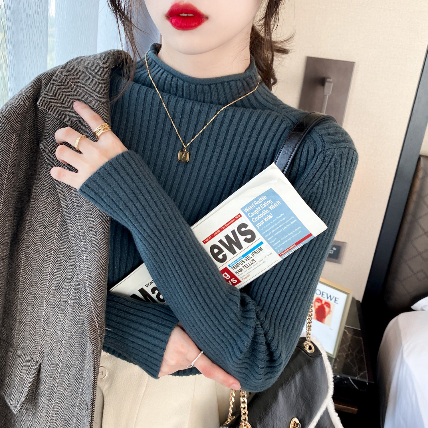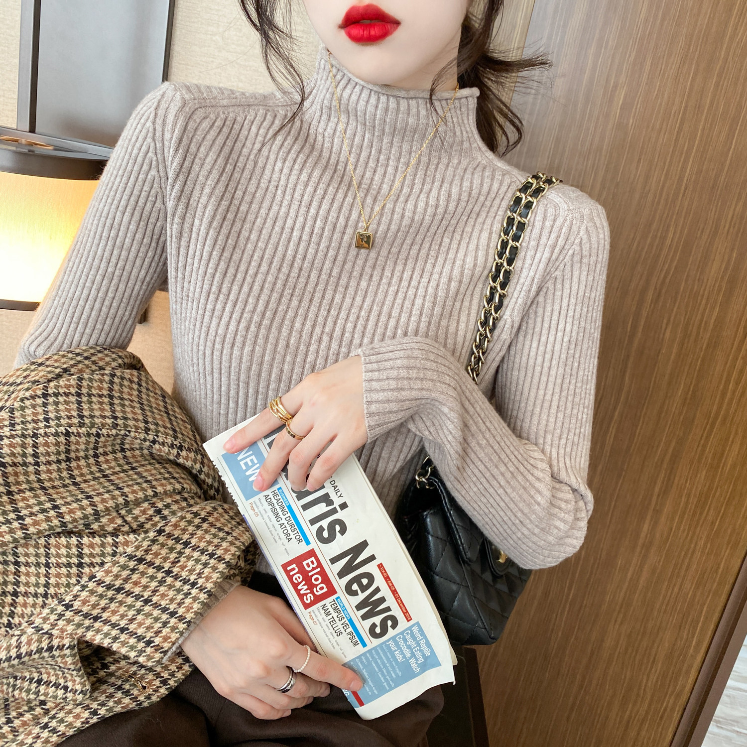 2022 Autumn Winter New Half High Collar Sweater Woman 100 lapped Thickened Foreign Pie Inner Lap Knit Undershirt