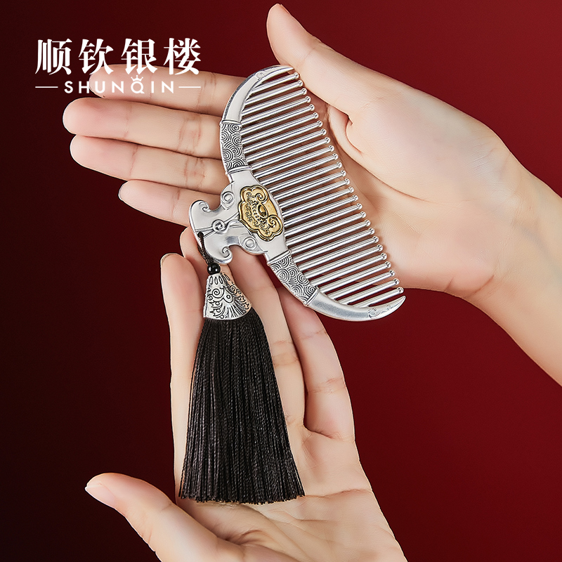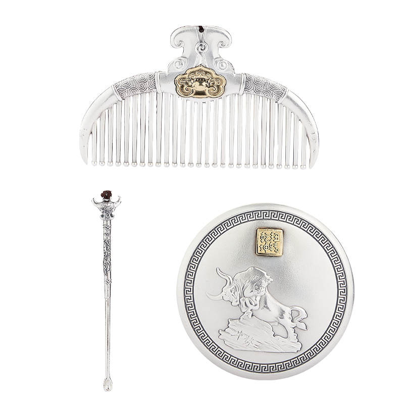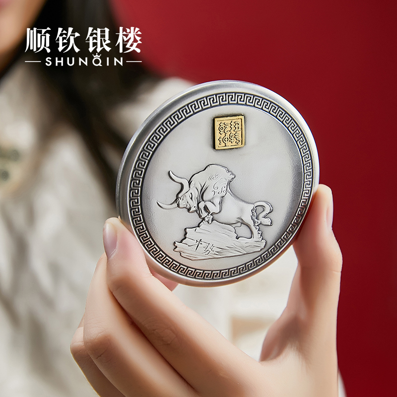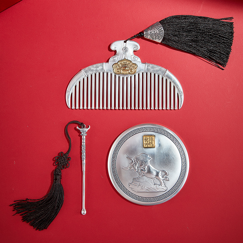 Shunqin silver building S999 pure silver ox Lunar New Year Lunar New Year Twist Dry Kun Silver Comb Suit Silver Mirror Silver Comb Silver Ear Spoon Silver Pendulum Piece