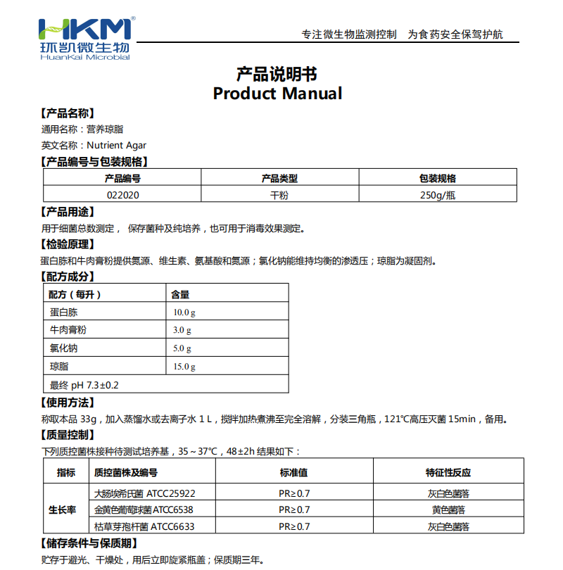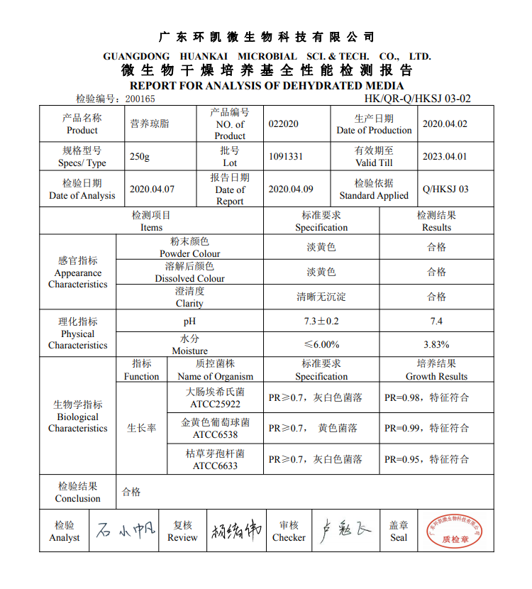 Nutrient Agar NA 250g Dry Powder Culture Medium Bacteria Total Determination of Guangdong Ring Kai 022020