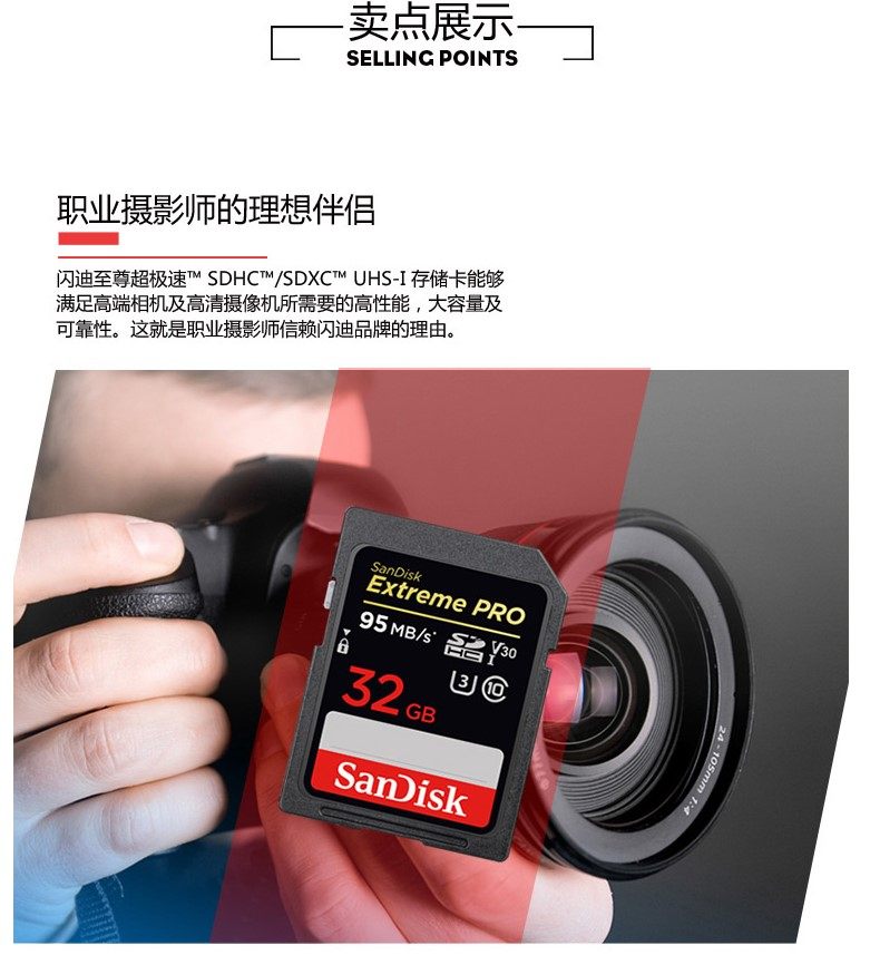 SanDisksd card 32g Canon Camera Memory Card High Speed Micro Single Eye Camera Anti-Nikon Memory Card 4K HD 95M S