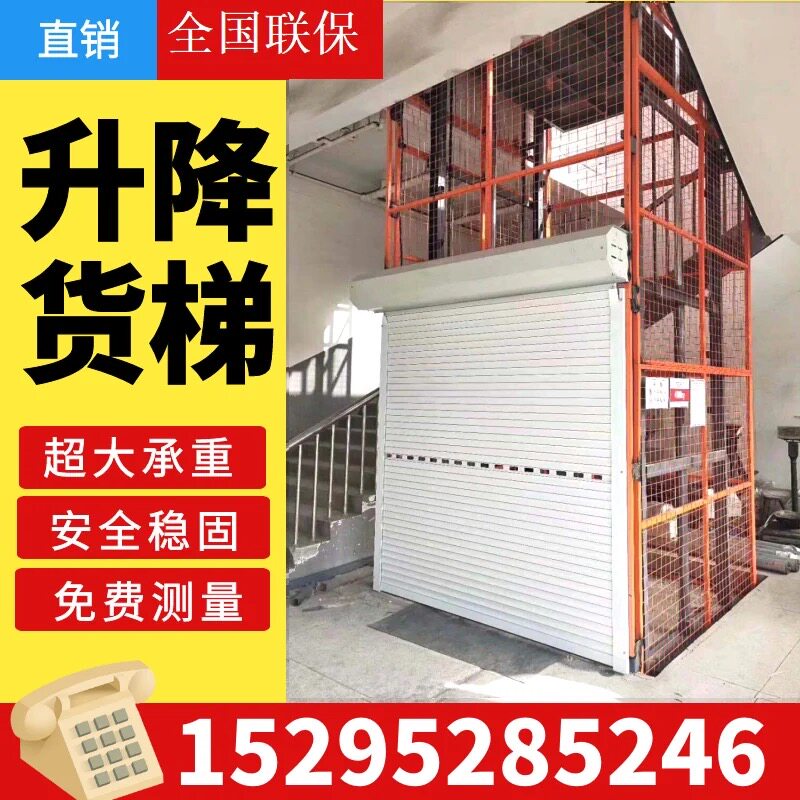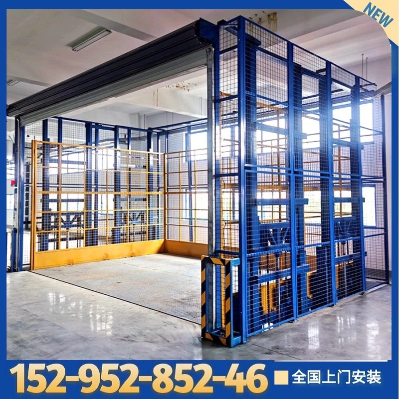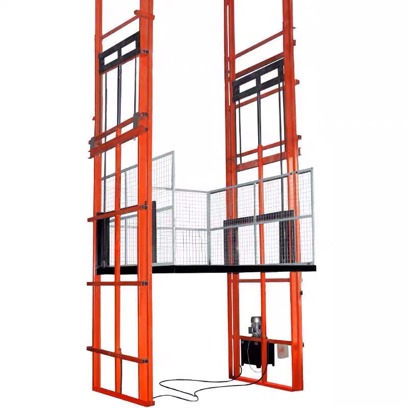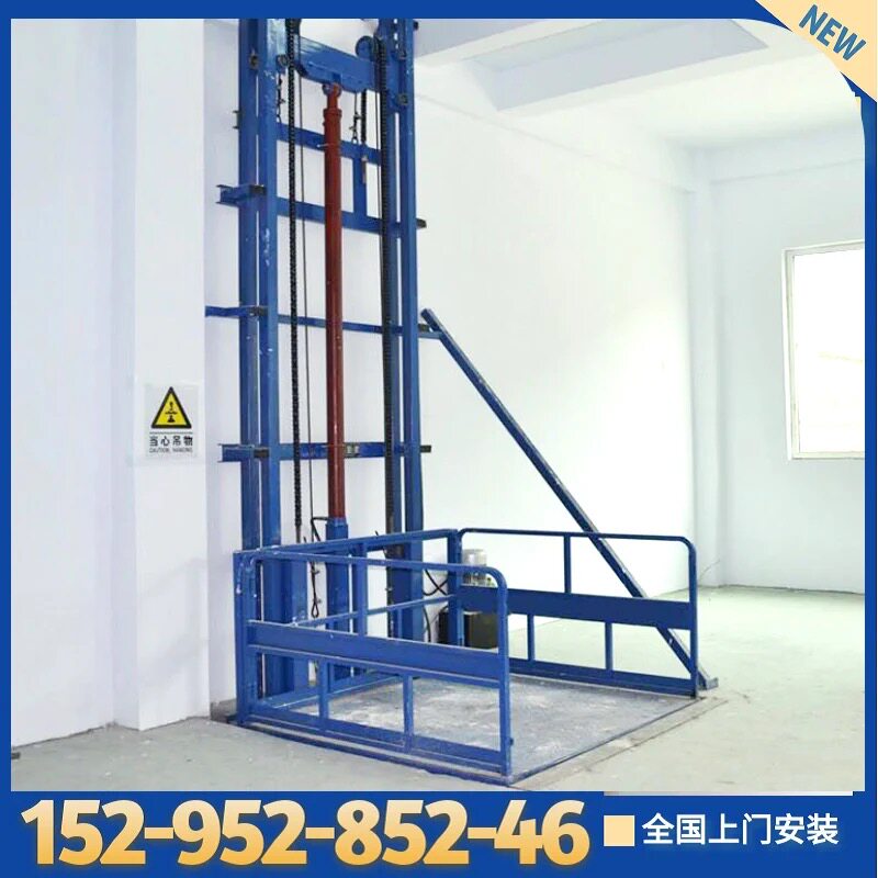 Factory anti-falling cargo elevator hydraulic guide rail type lifting platform warehouse single double track simple small hoist