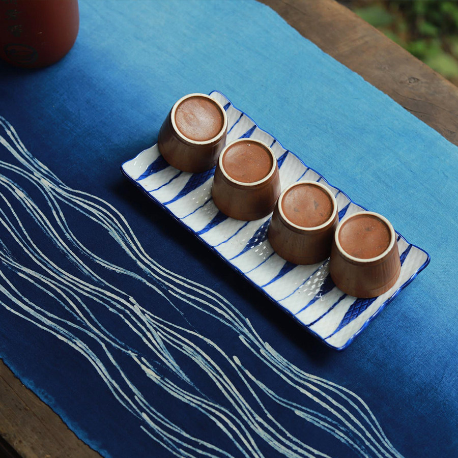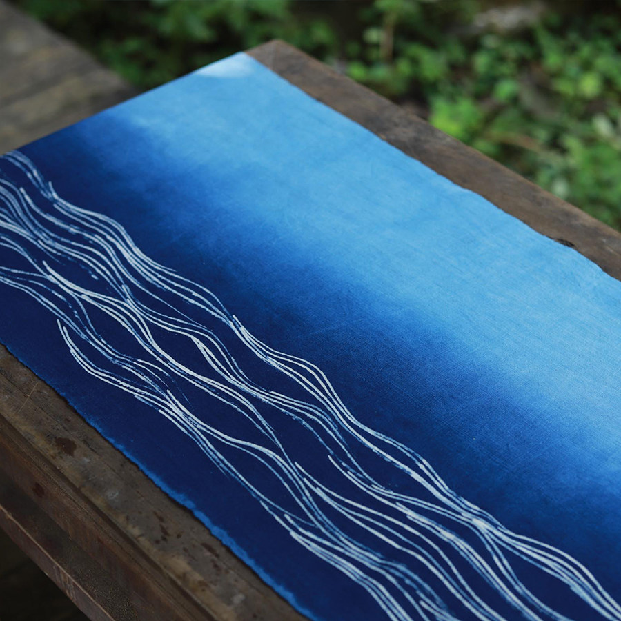 Shuijiafang grass and wood dyeing batik hand-painted Guizhou hand-woven tea mat soft water ripple blue dye gradient color
