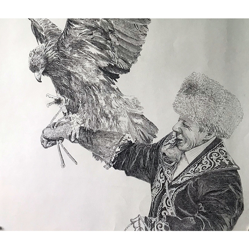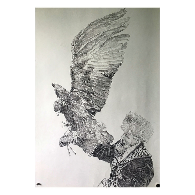 Xinwei "Eagle Hunter" new pen drawing on paper