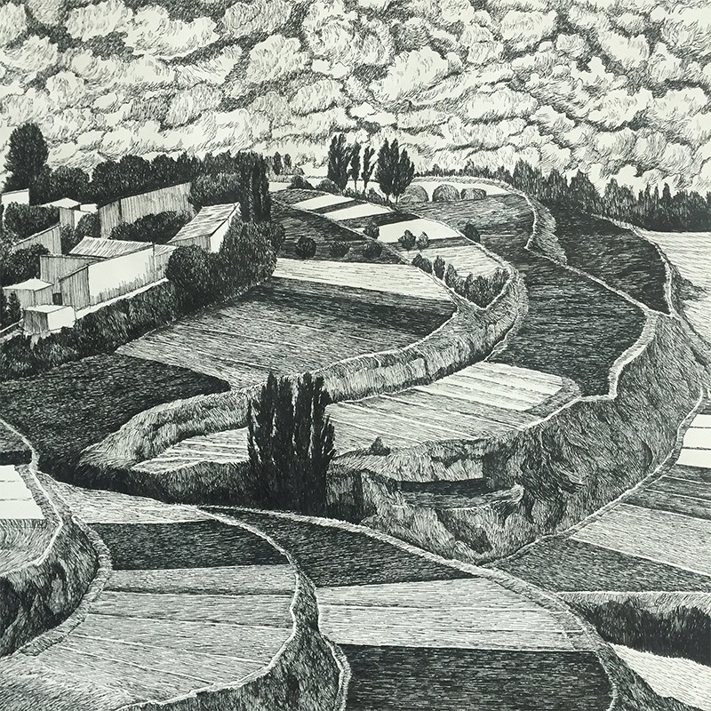 (Mounted)Zhu Yongping "Cultivating between Heaven and Earth"New pen painting on paper with a group photo