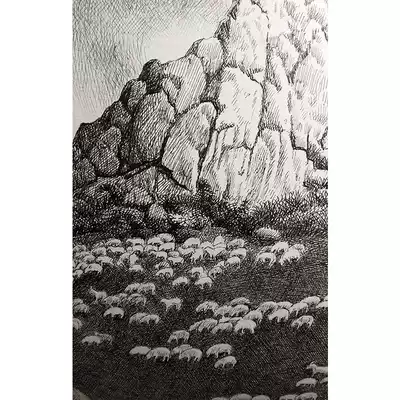 Chen Huazhi"On the Hillside of Qingqing"New pen painting on paper