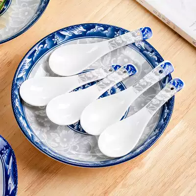 Japanese-style small soup spoon Household ceramic spoon Creative spoon Spoon drinking spoon Large porcelain spoon long handle porridge spoon Porridge spoon