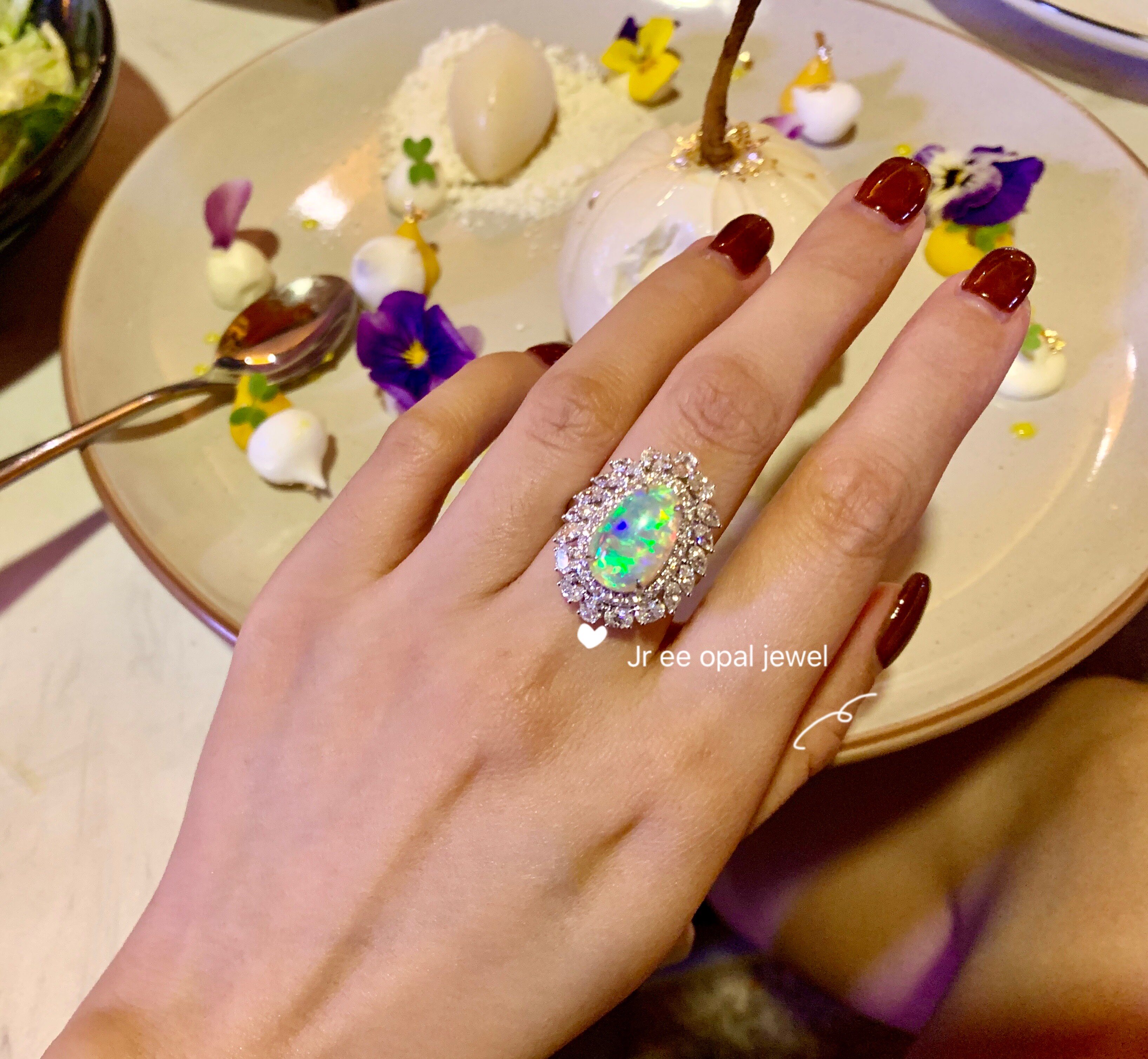 Design Jewelry Custom Natural Australia Lightning Ridge Black Crystal Opal Ring Opal 18K Gold Diamond Ring