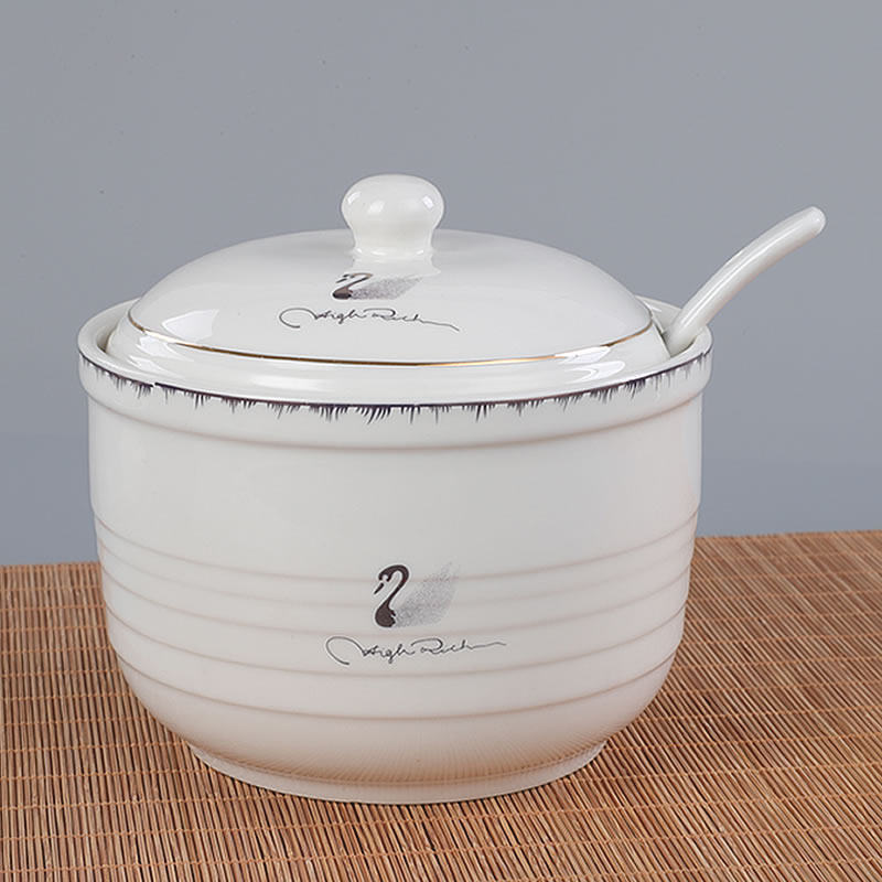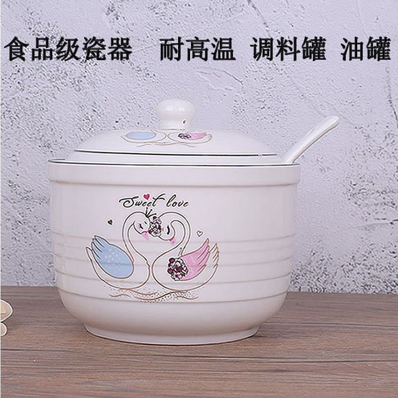 Ceramic cover spoon one flavor bottle combined large salt tank housekitchen chili oil tank