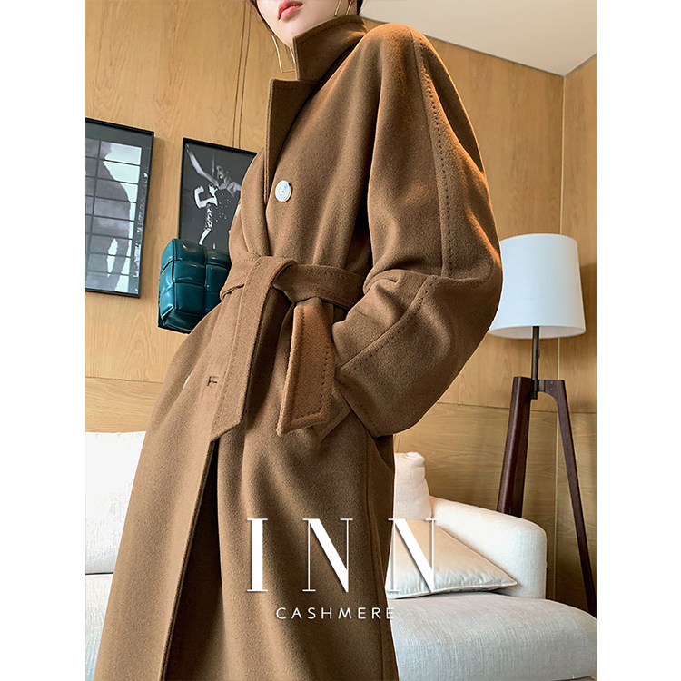 2022 New tobacco color y101801 High-end bifacial cashmere Grand coat woman with long version of fur coats winter
