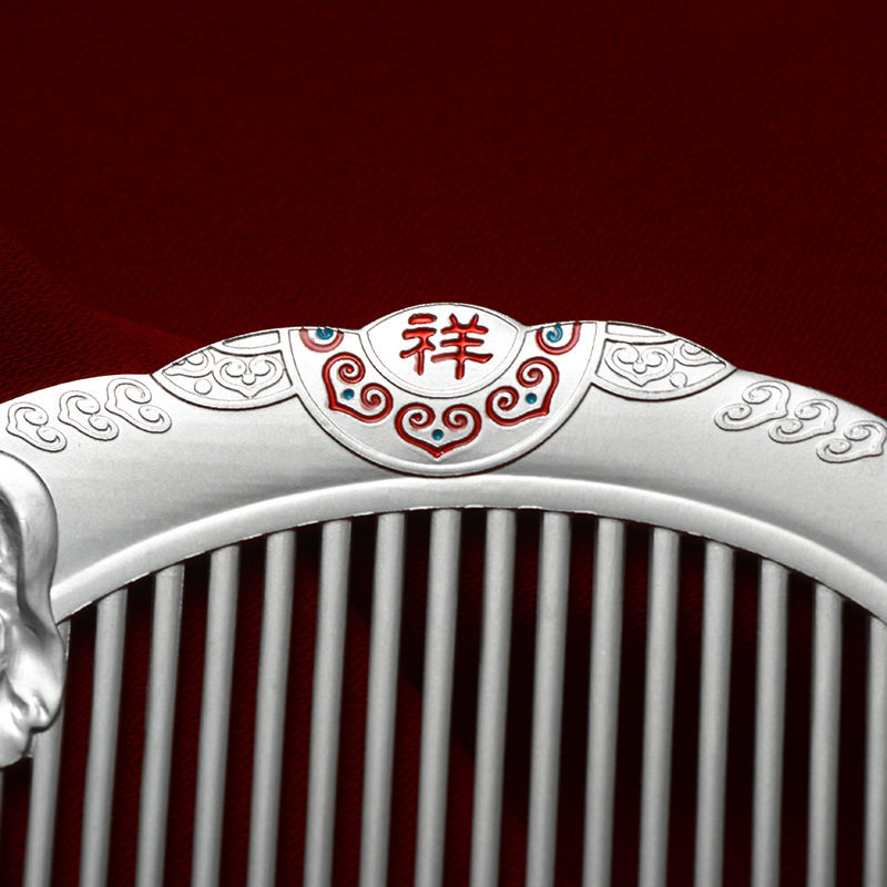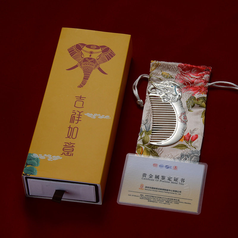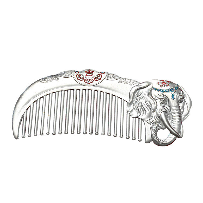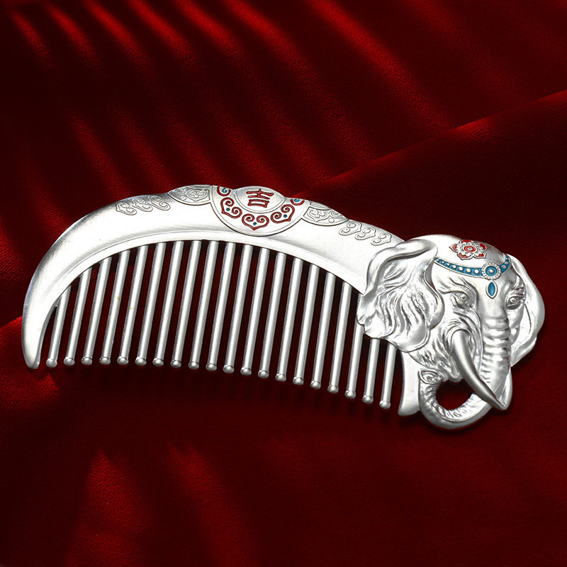 999 sterling silver hair comb auspicious elephant silver comb Yunnan snowflake silver festival gift health care comb