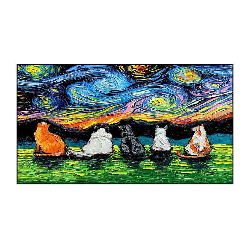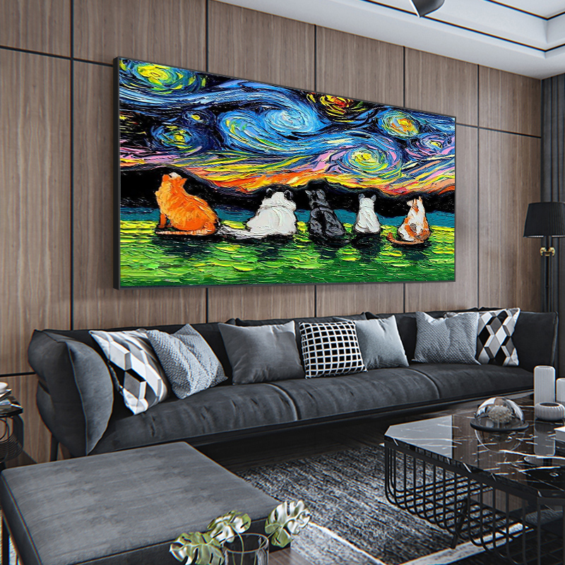 Notareart hand-painted oil painting "Starry Sky" porch background decorative painting Van Gogh animal living room dining room hanging painting