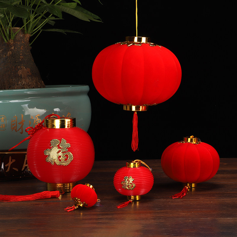 Opening Qiao relocating small lanterns hanging decoration outdoor tree bonsai decoration indoor scene arrangement flocking red lantern pendant