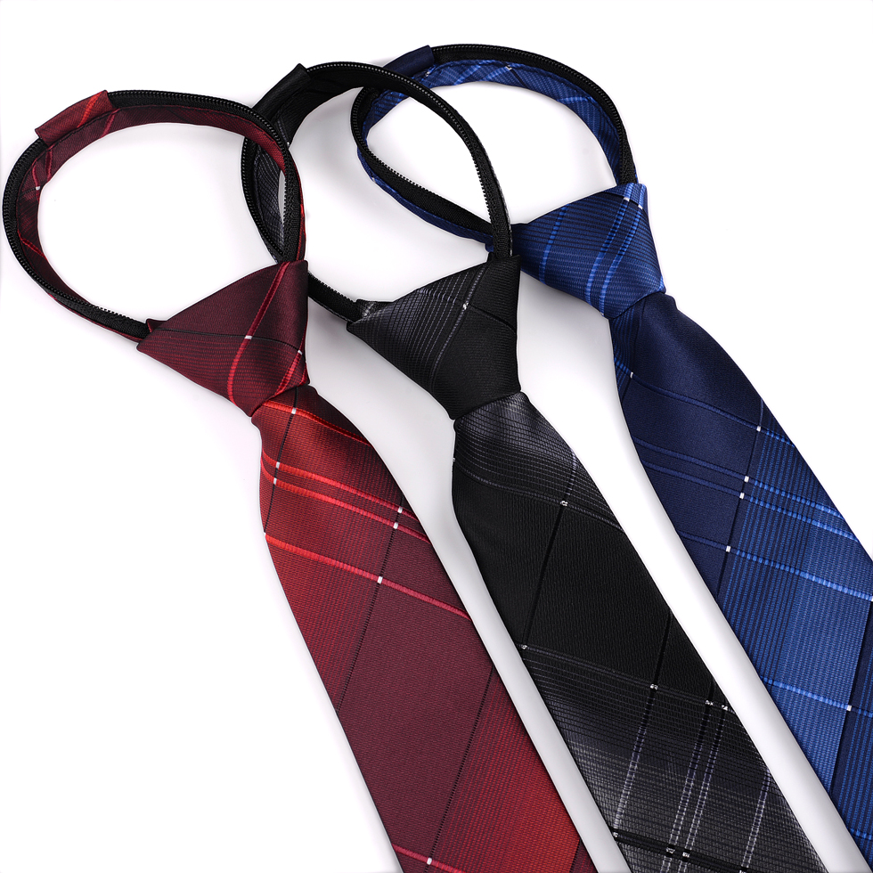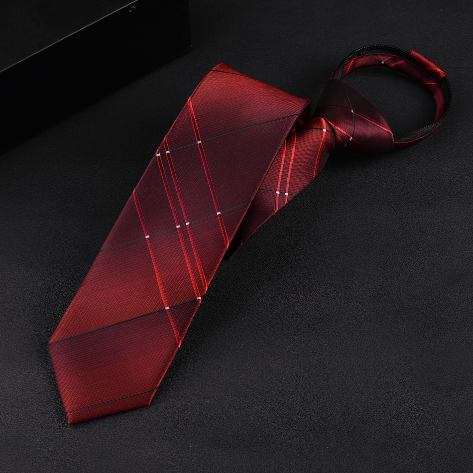 Red tie men's free zipper men's wedding festive wine red easy to pull work work black wild tide