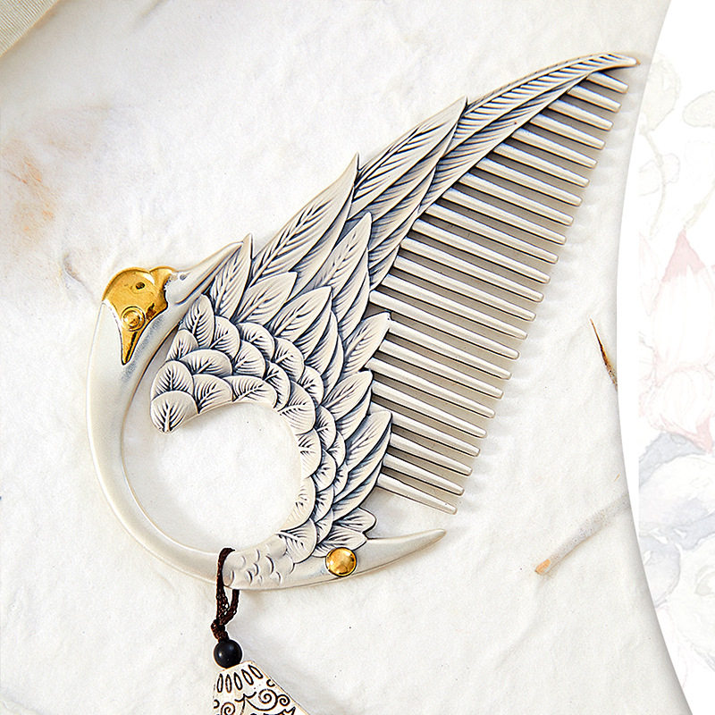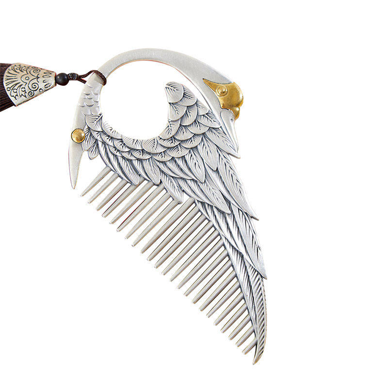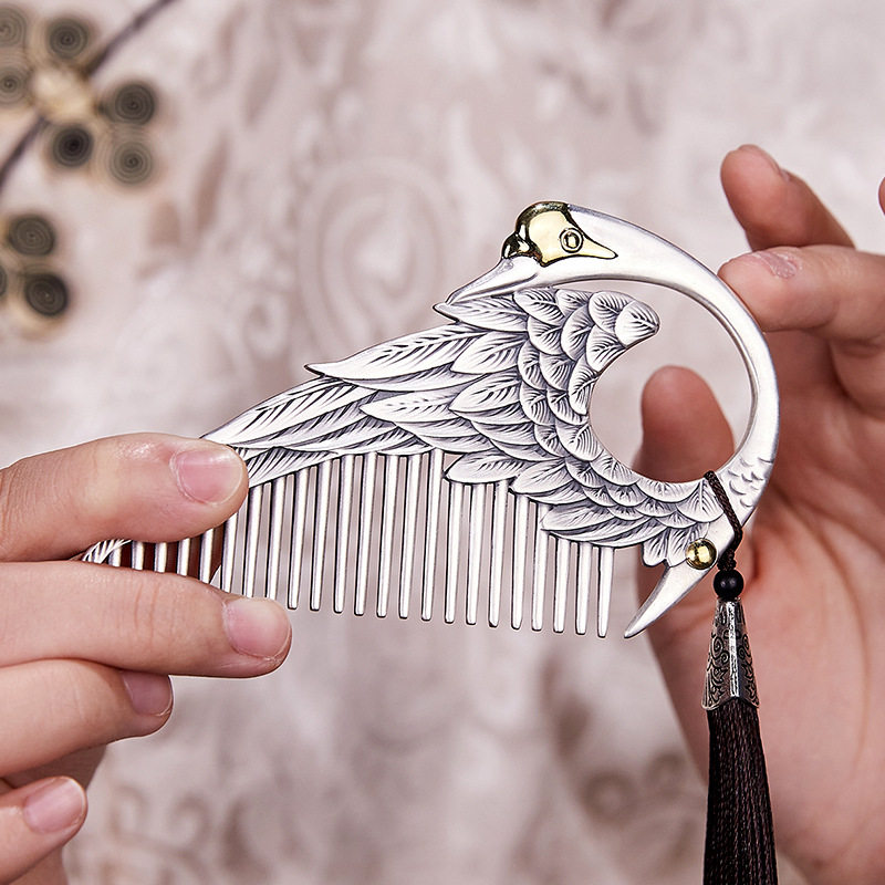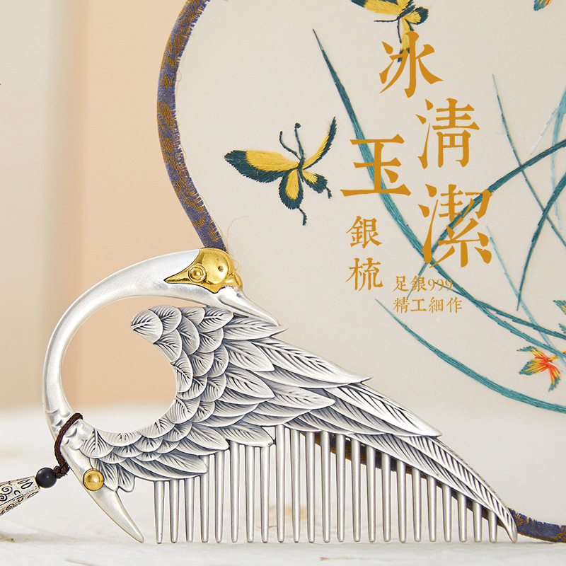 Silver comb 999 pure silver hair comb with ice clear jade insert comb send mother gift Yunnan snowflake silver health care massage comb