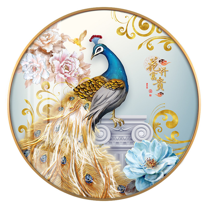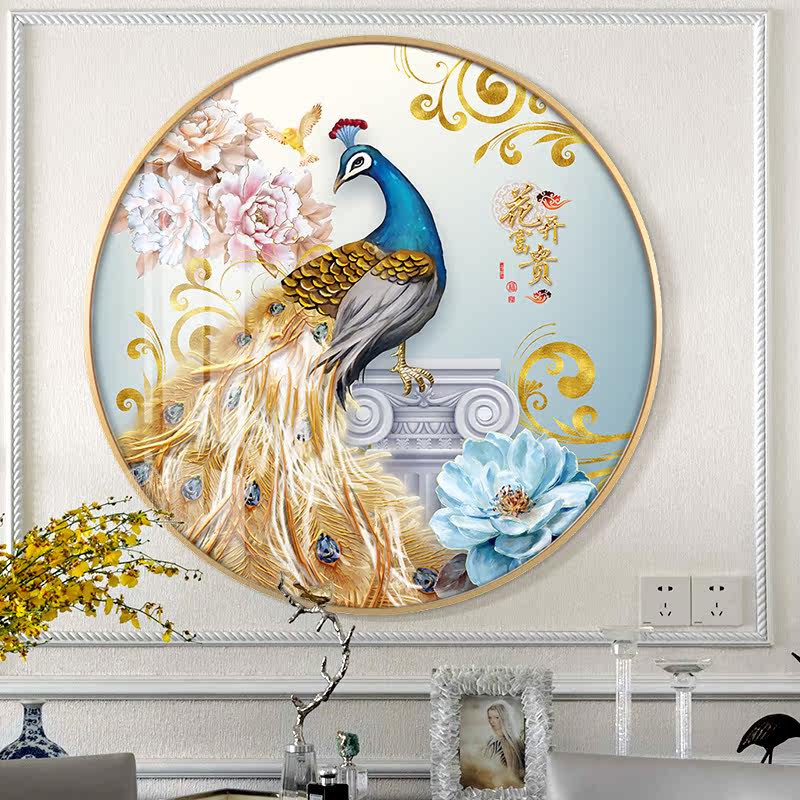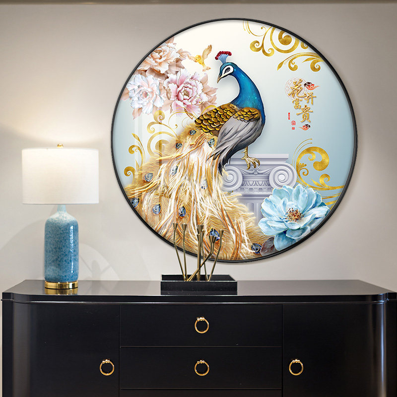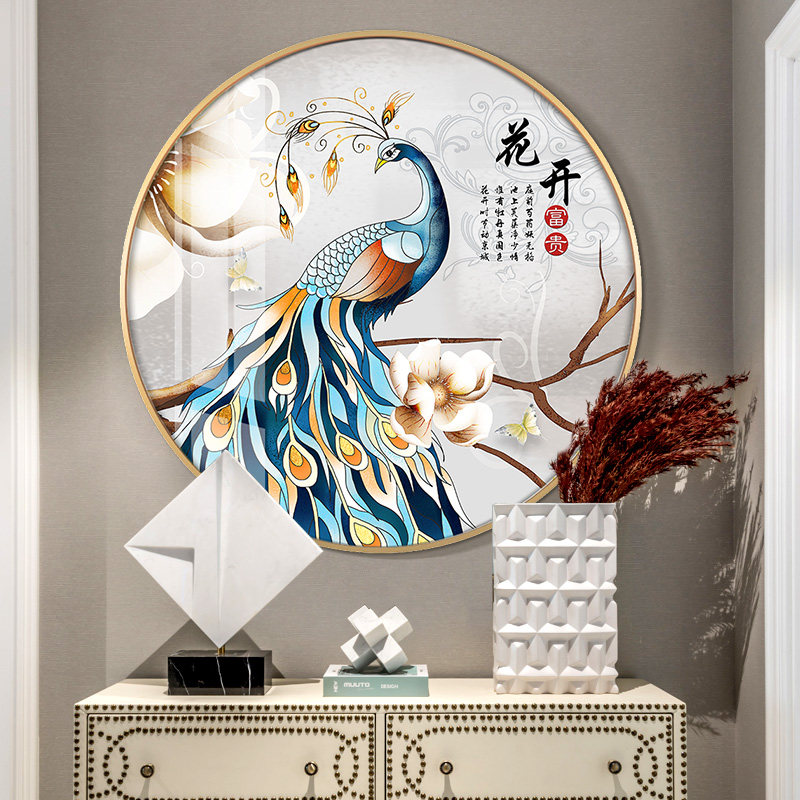 Entrance wall porch decorative painting round hanging painting living room above the table hanging painting bedroom crystal porcelain painting peacock