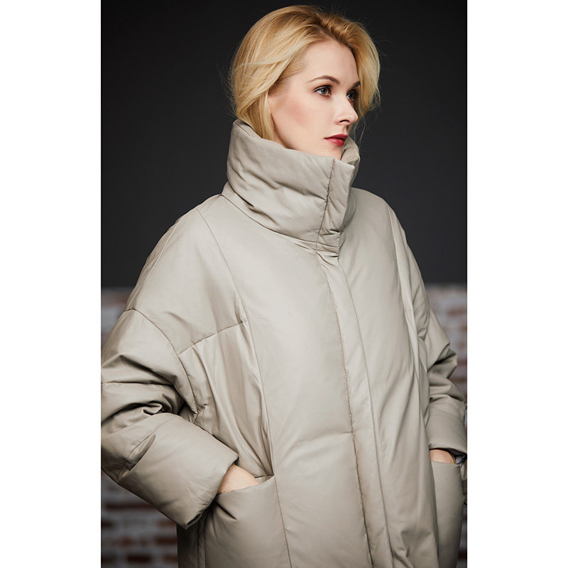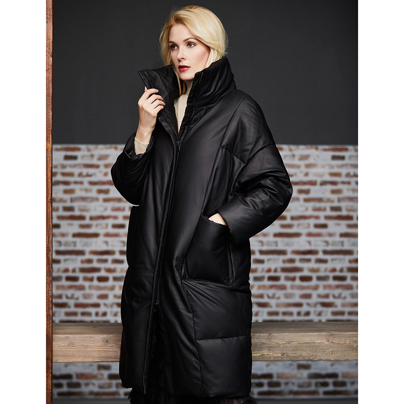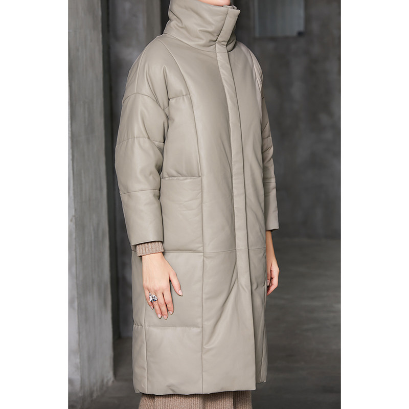 U N Q ultra-warm heavy pound thickened 90 white duck suede neckline lamb leather down coat with long version genuine leather jacket dresses