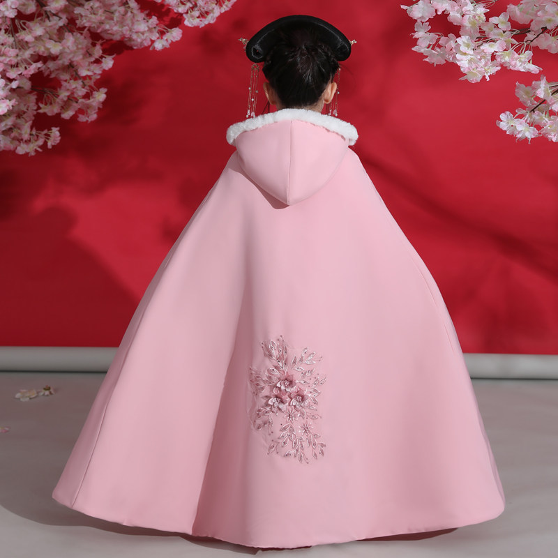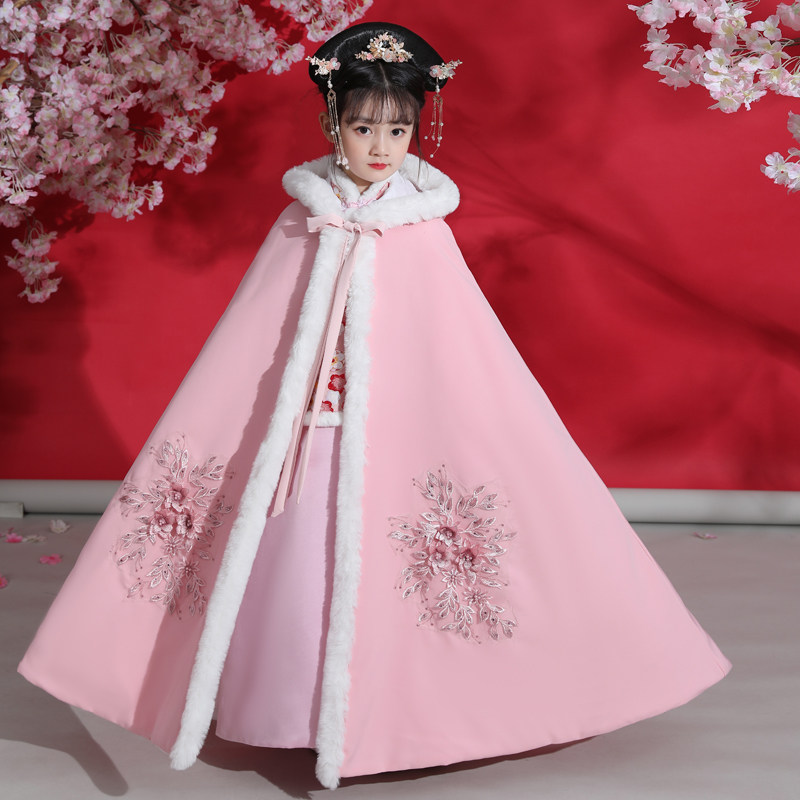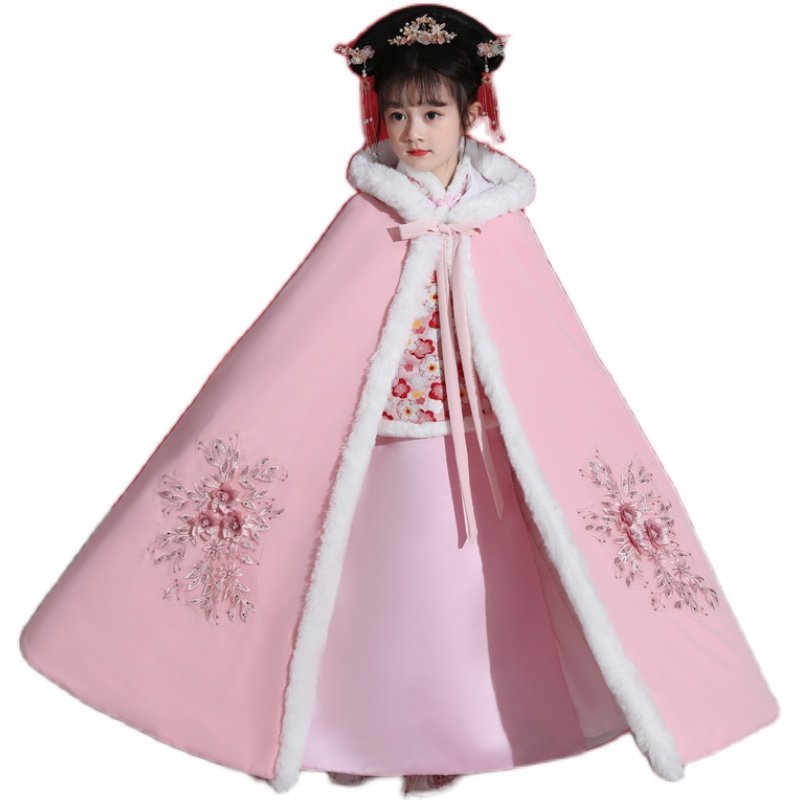 Girls Hanfu cloak children go out warm windproof wool shawl baby little girl hooded cloak winter thickening