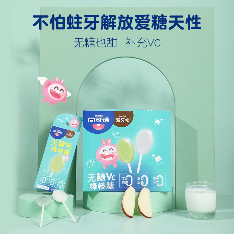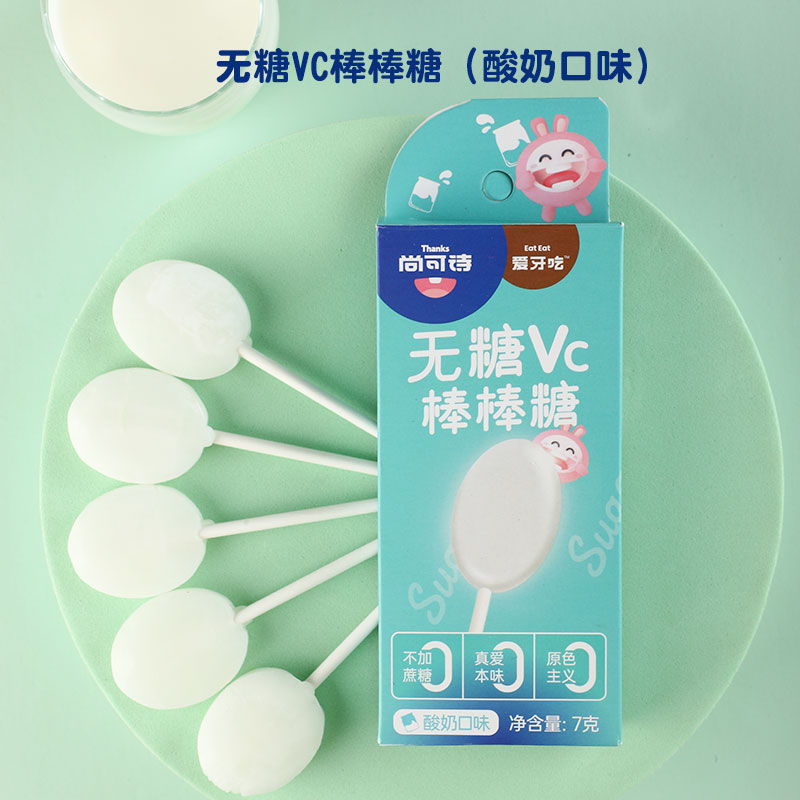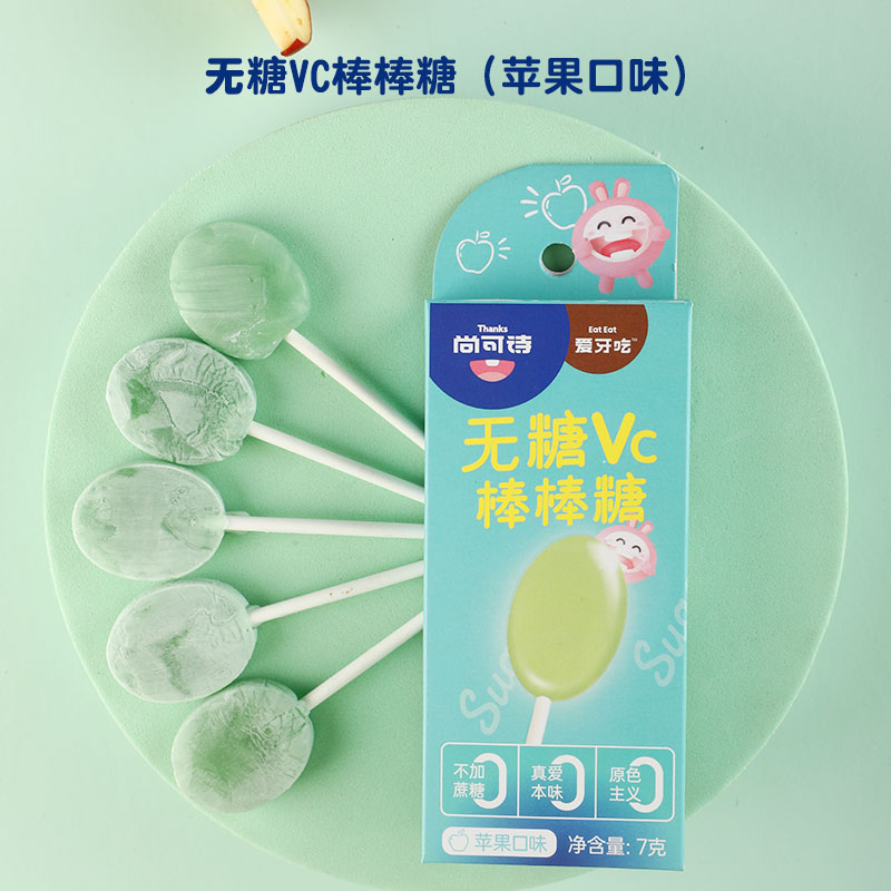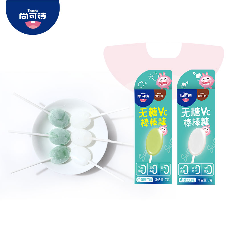 Shangkeshi Sugar-Free VC Lollipop Yogurt Flavor Apple Flavor Fruit Children Healthy Snack Candy 7G*1 Stick