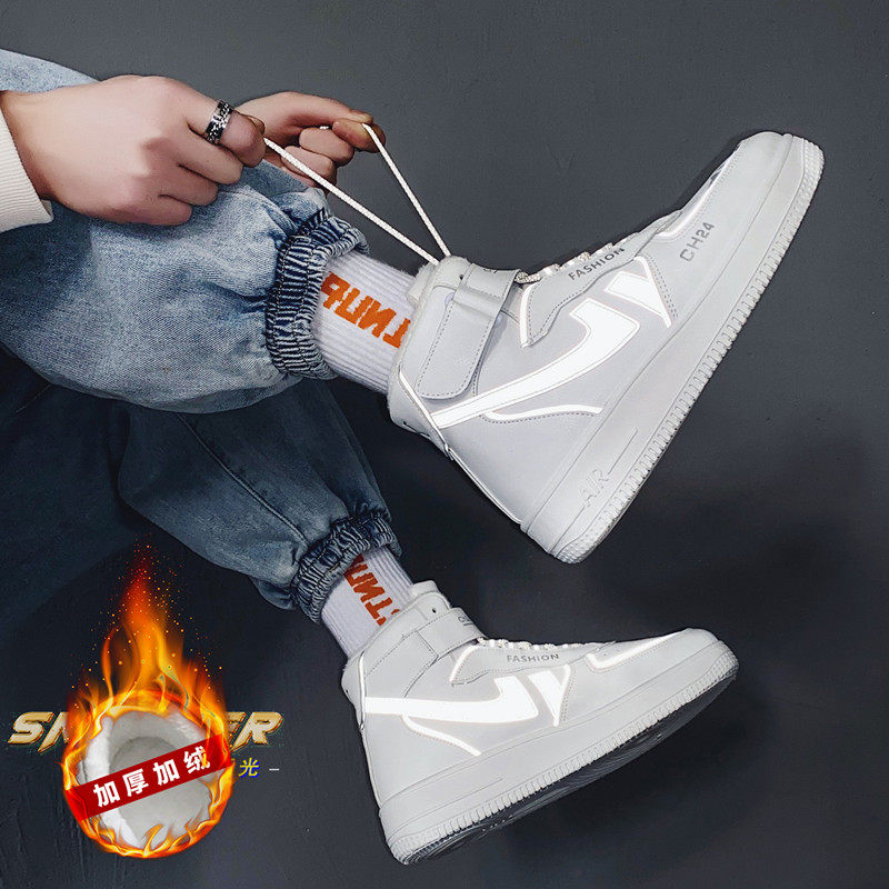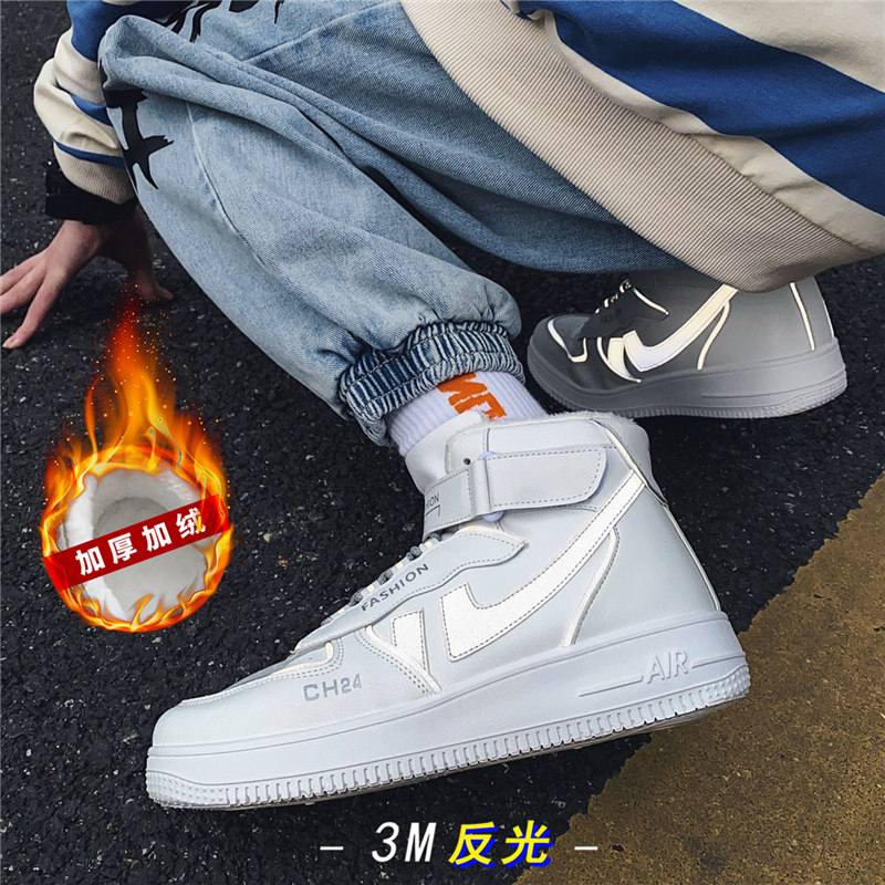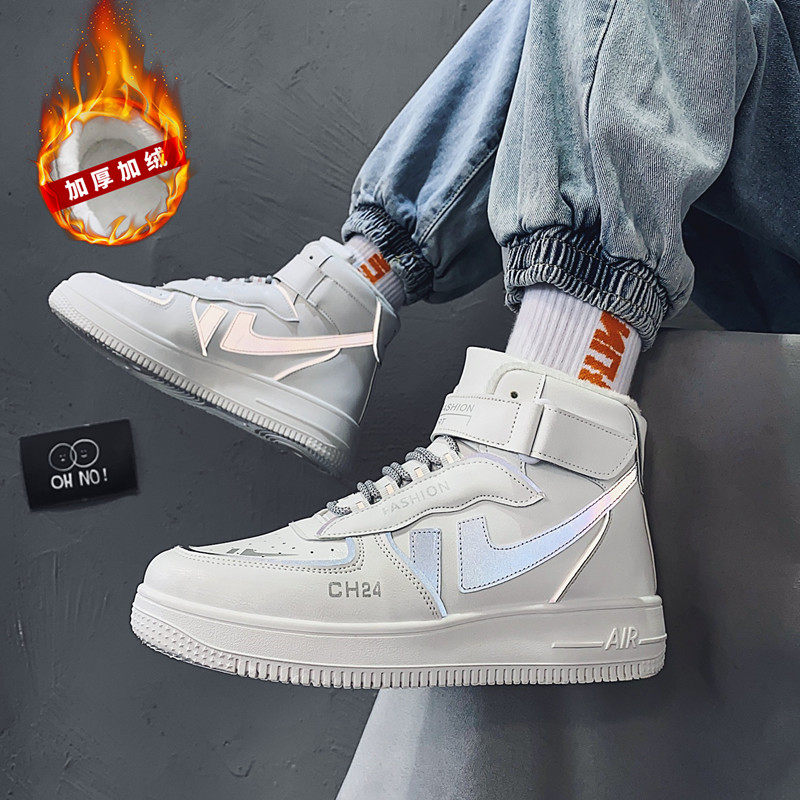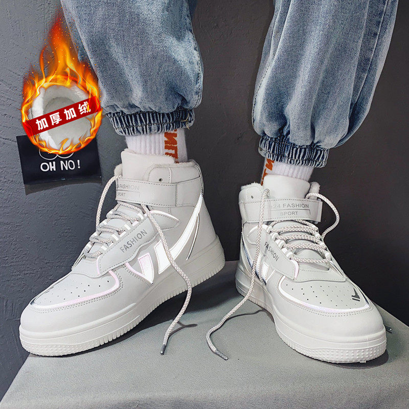 Winter cotton shoes plus velvet thick high-top shoes warm white shoes male Air Force No. 1 Korean version of the tide shoes student skate shoes