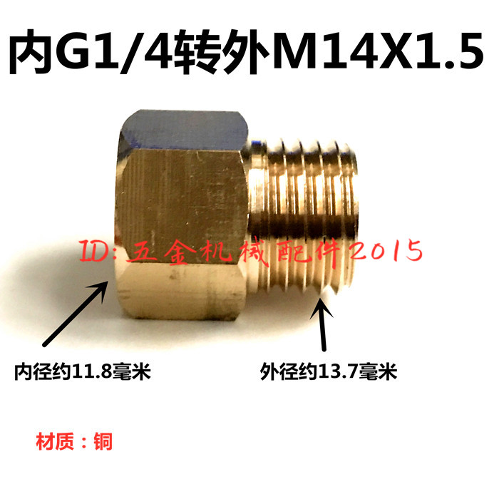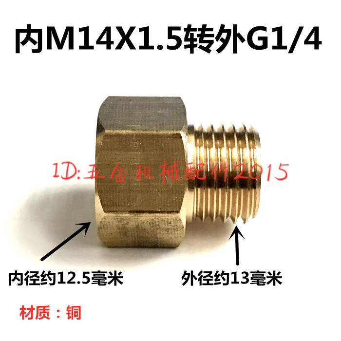 Public-made M14X1 5 transfer to English G1 2 threaded pipe gas pipe airpipe spray gun pressure meter and other internal and external conversion copper joints