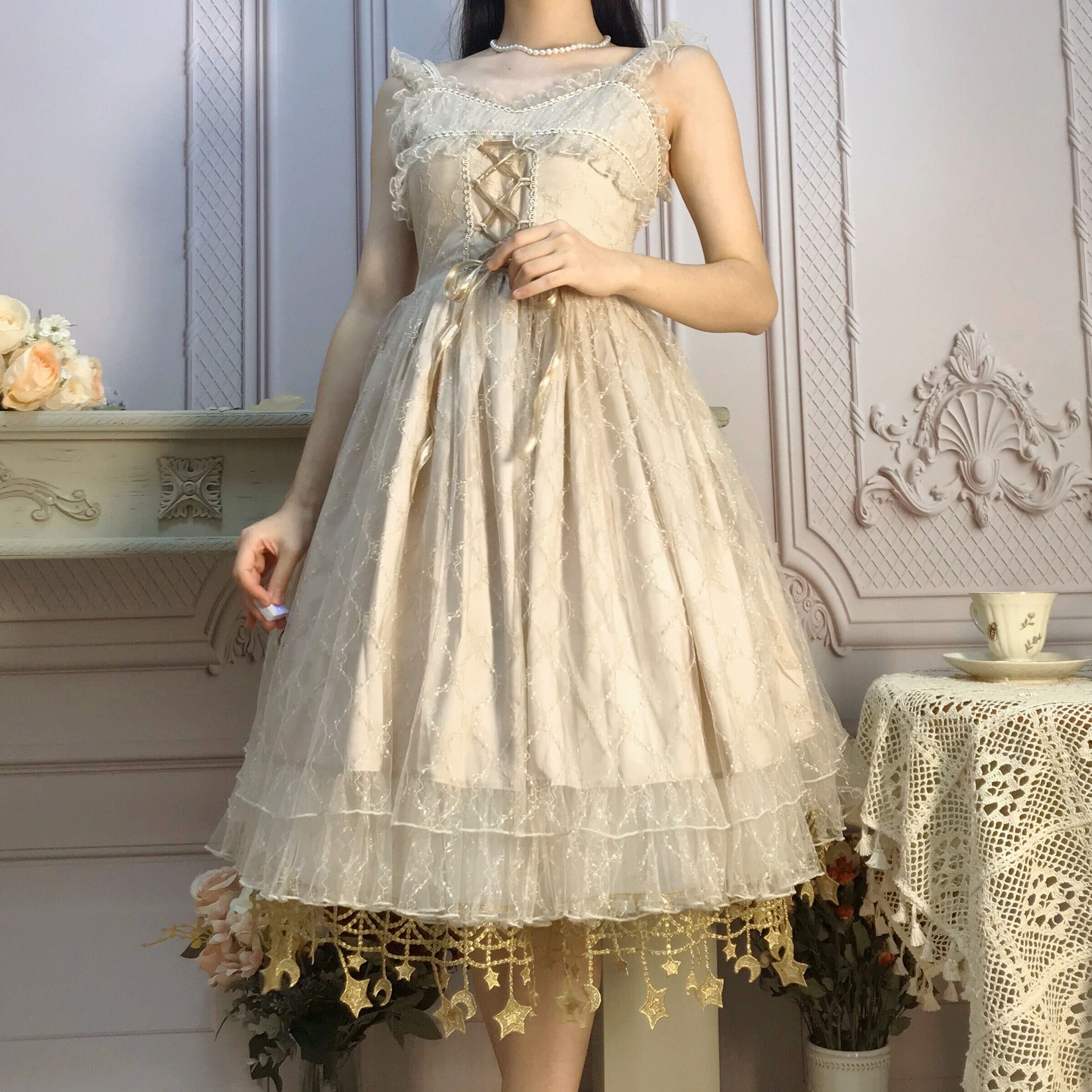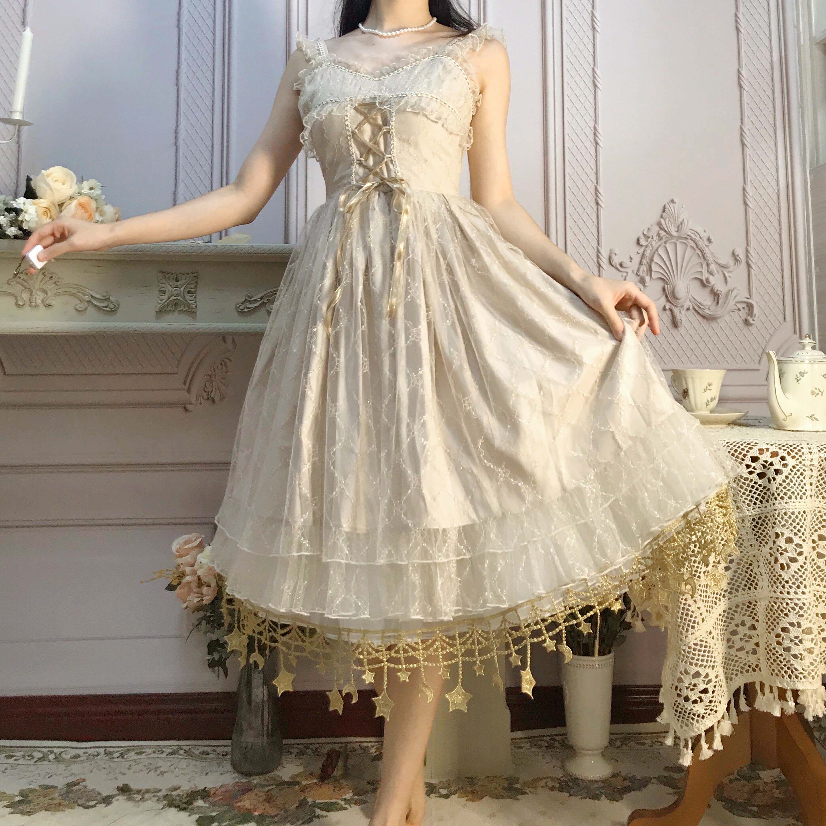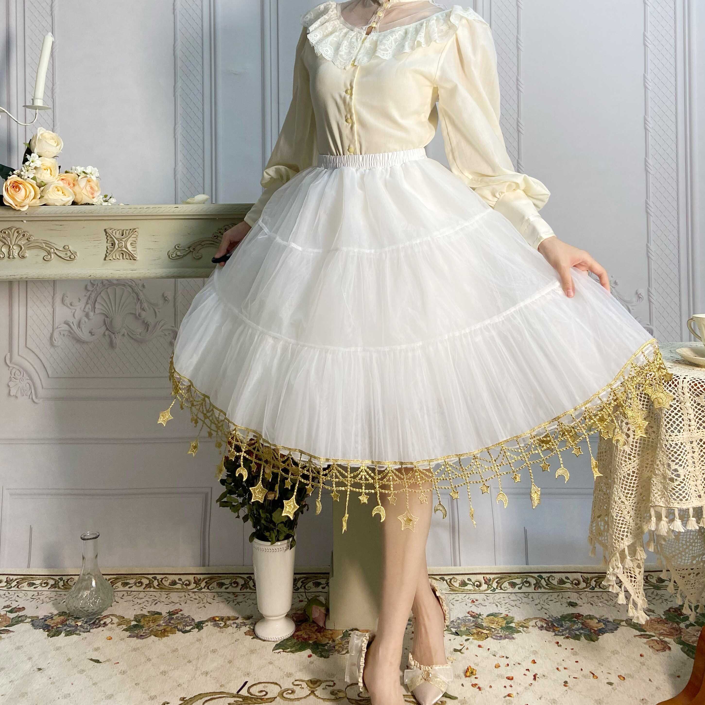 Rainbow Puff Moon Star River Lolita Boneless Soft Yarn Skirt Lolita Violent Daily Mid-Length Skirt