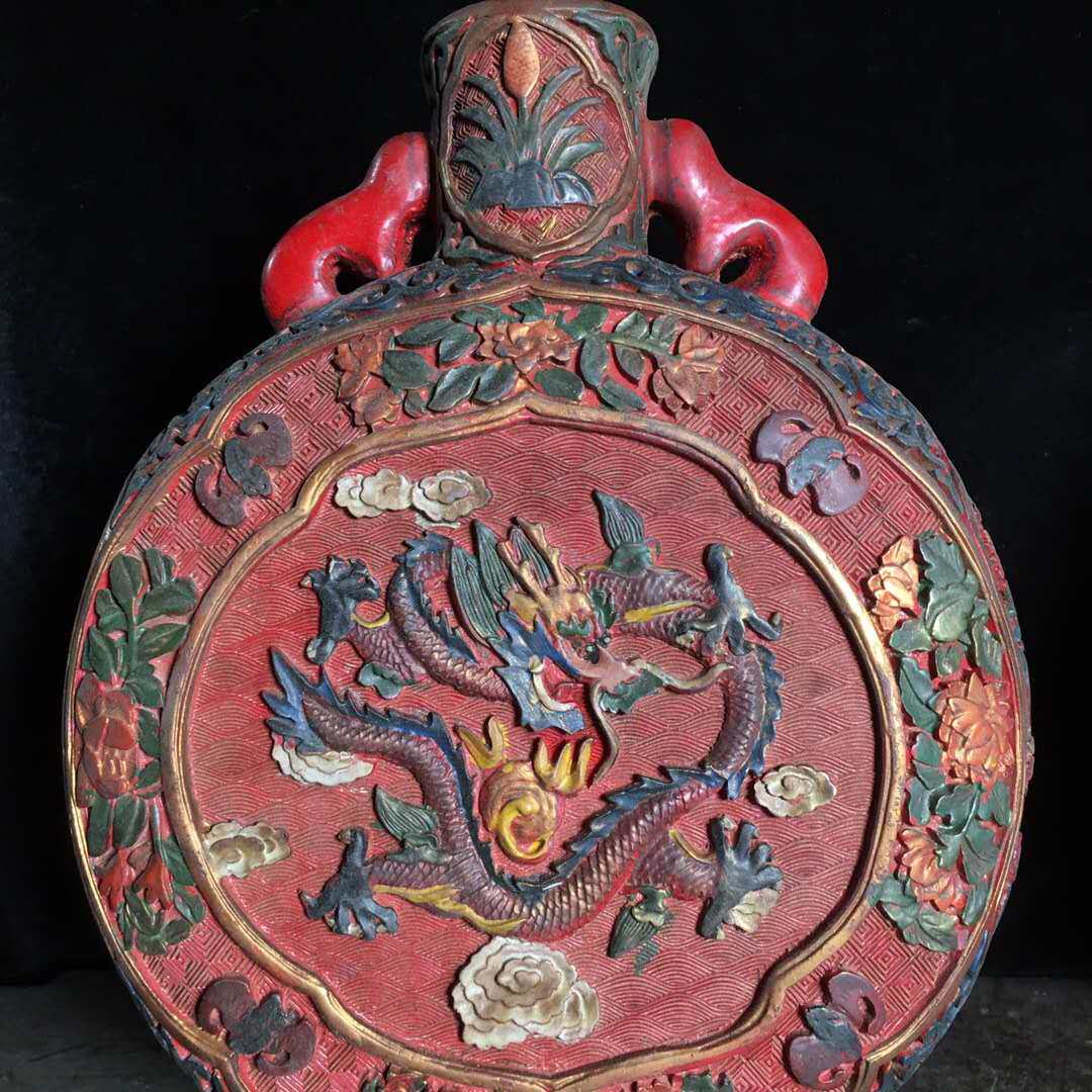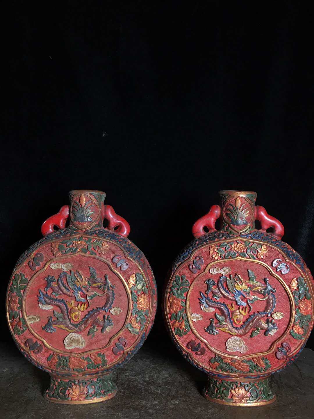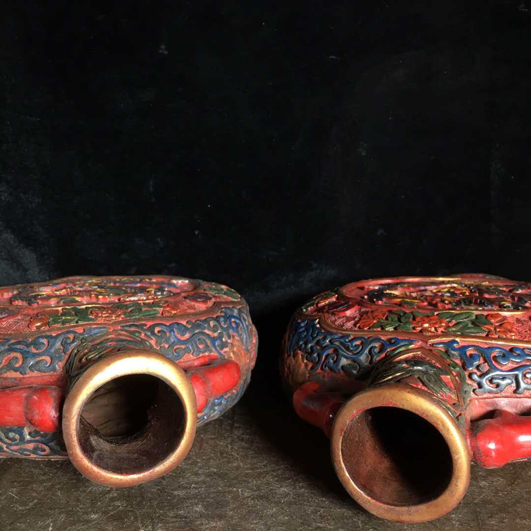 Folk collection Old color painted lacquerware vase A pair of home swing accessories high 26 cm