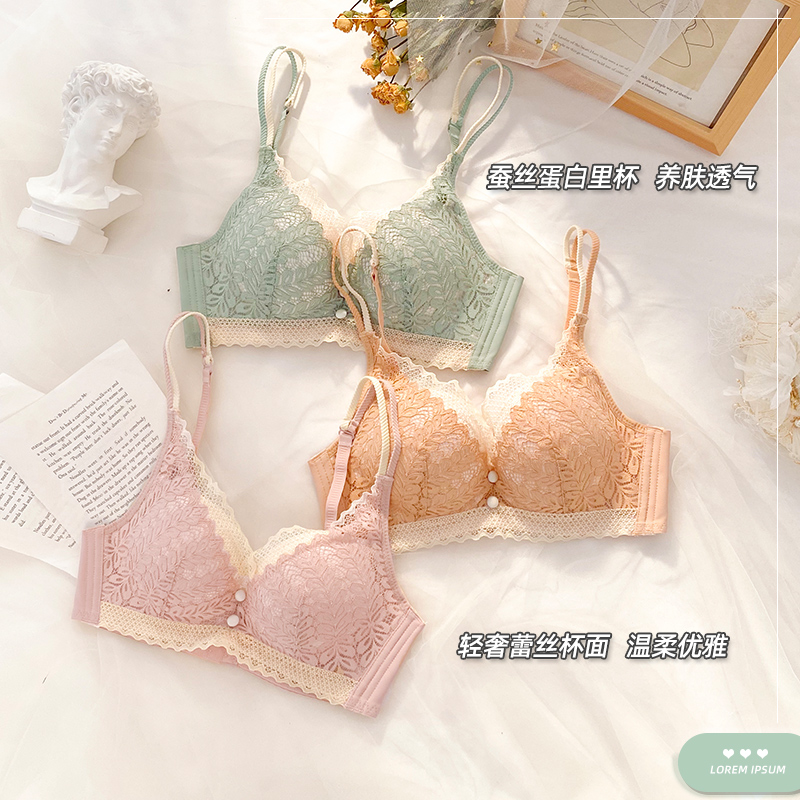 Lingerie Woman No Steel Ring Small Chest Gathering Anti Drooping Sexy Lace Seductive Girl Bra No Mark Underwear Hood Suit