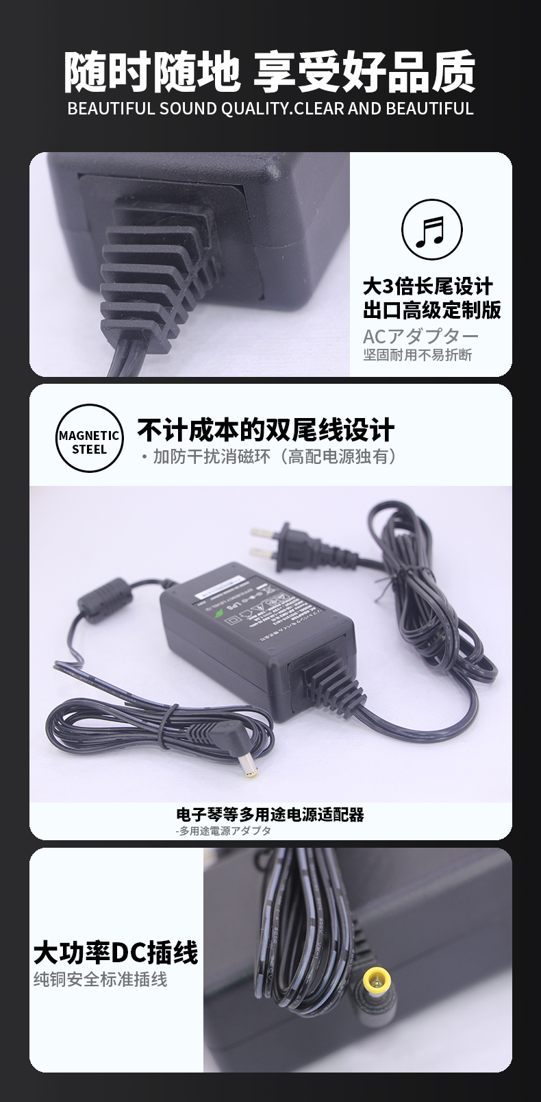 Electronic organ power adapter 12V original electronic keyboard power cord transformer plug charger universal cable