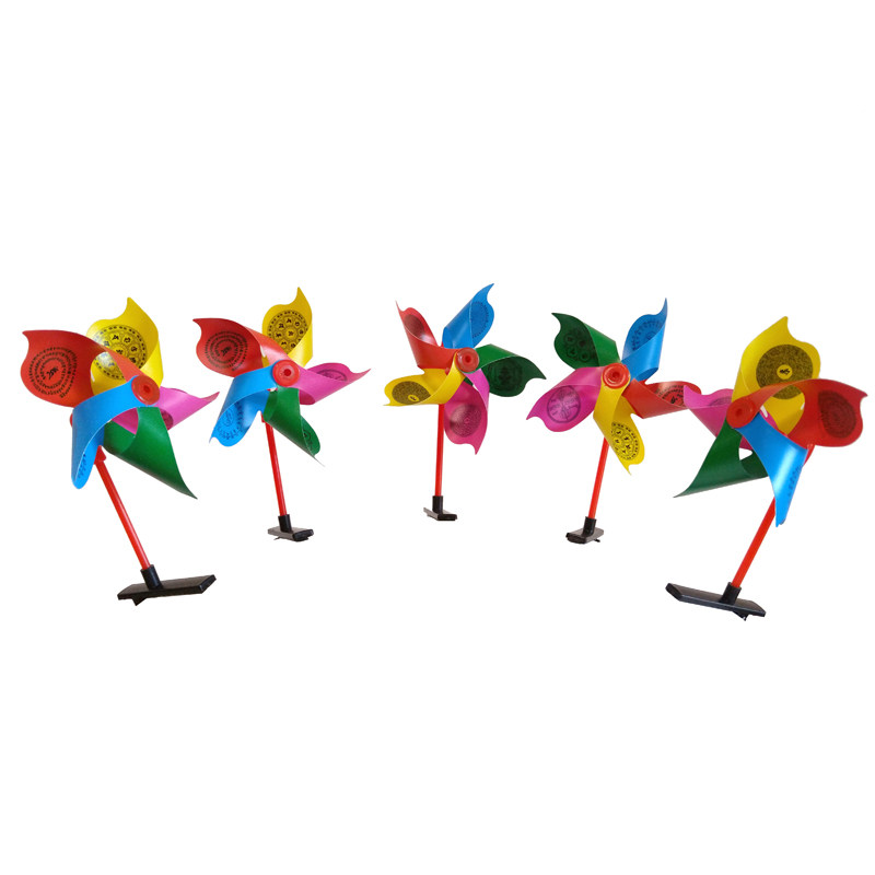 Double - sided windmill hair clamp automatic wind - power transformation wheel - transverse barrel five - color flag flag 10