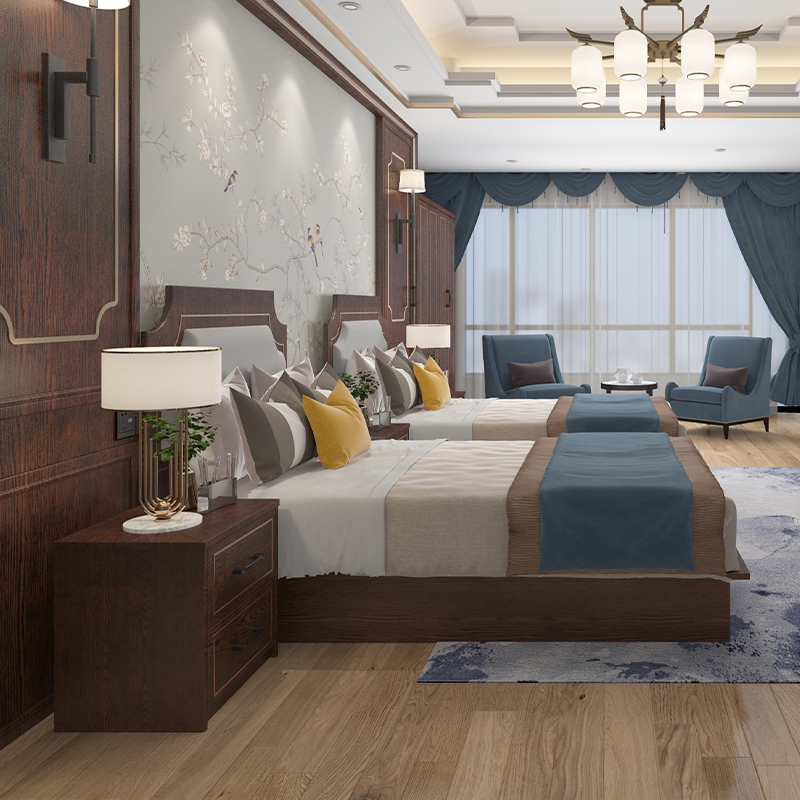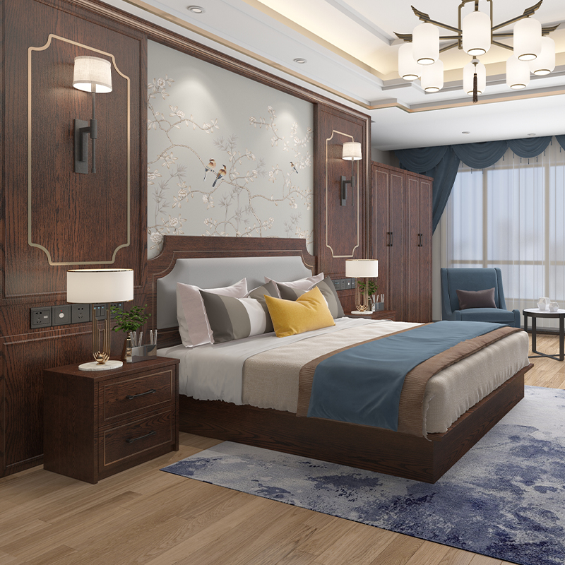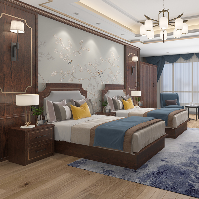 New Chinese-style hotel hotel furniture standard room full set of light luxury homestay bed combination solid wood custom single double bed