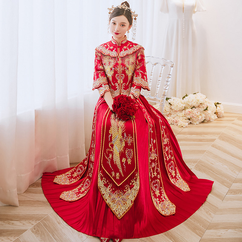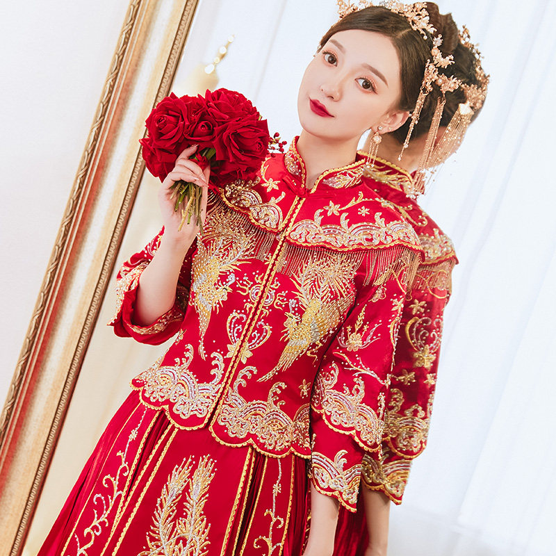 Show Wo Costume Bride 2022 New Chinese Wedding Dress Wedding Dresses Woman Shawl Show And and Spring Conspiculess Wedding Dress