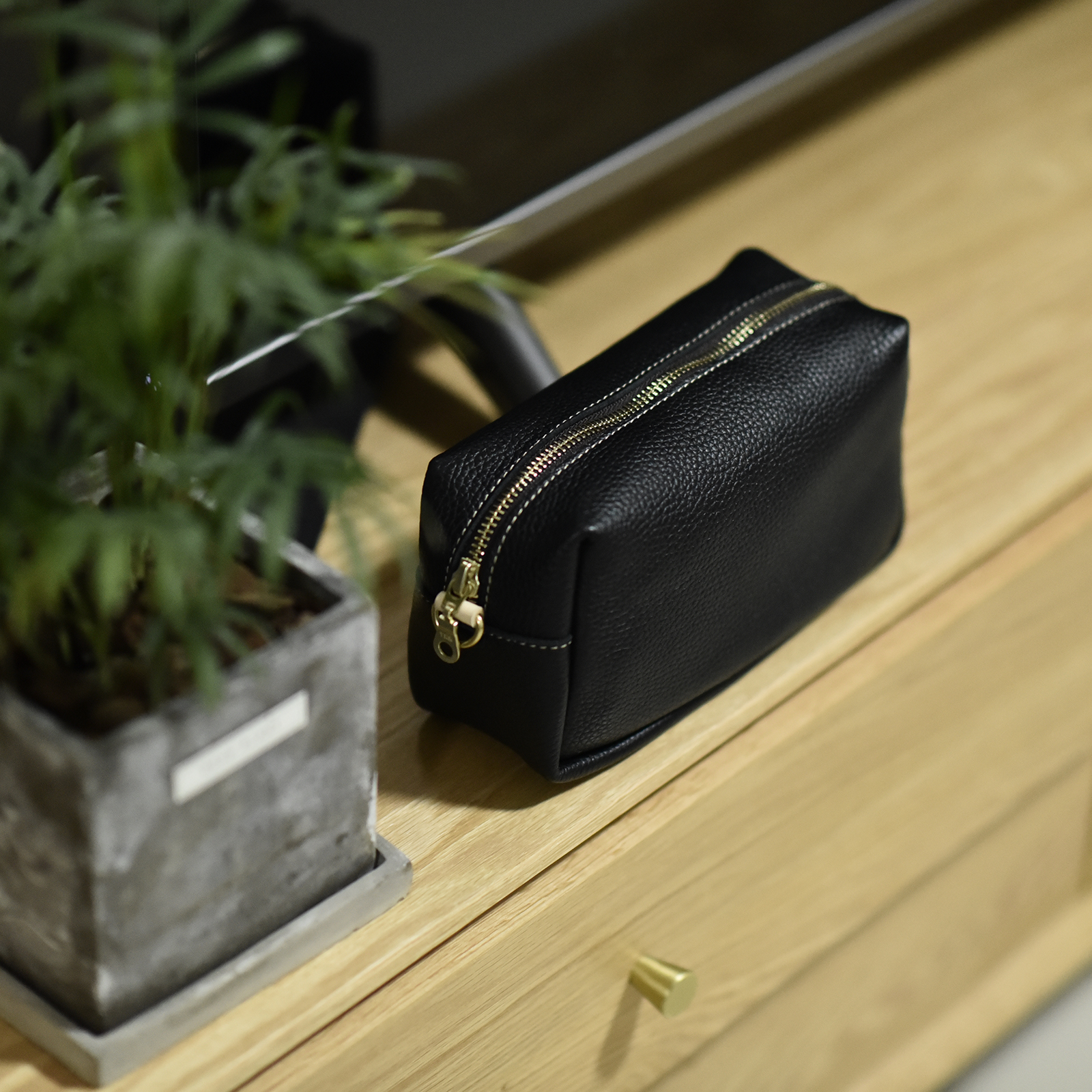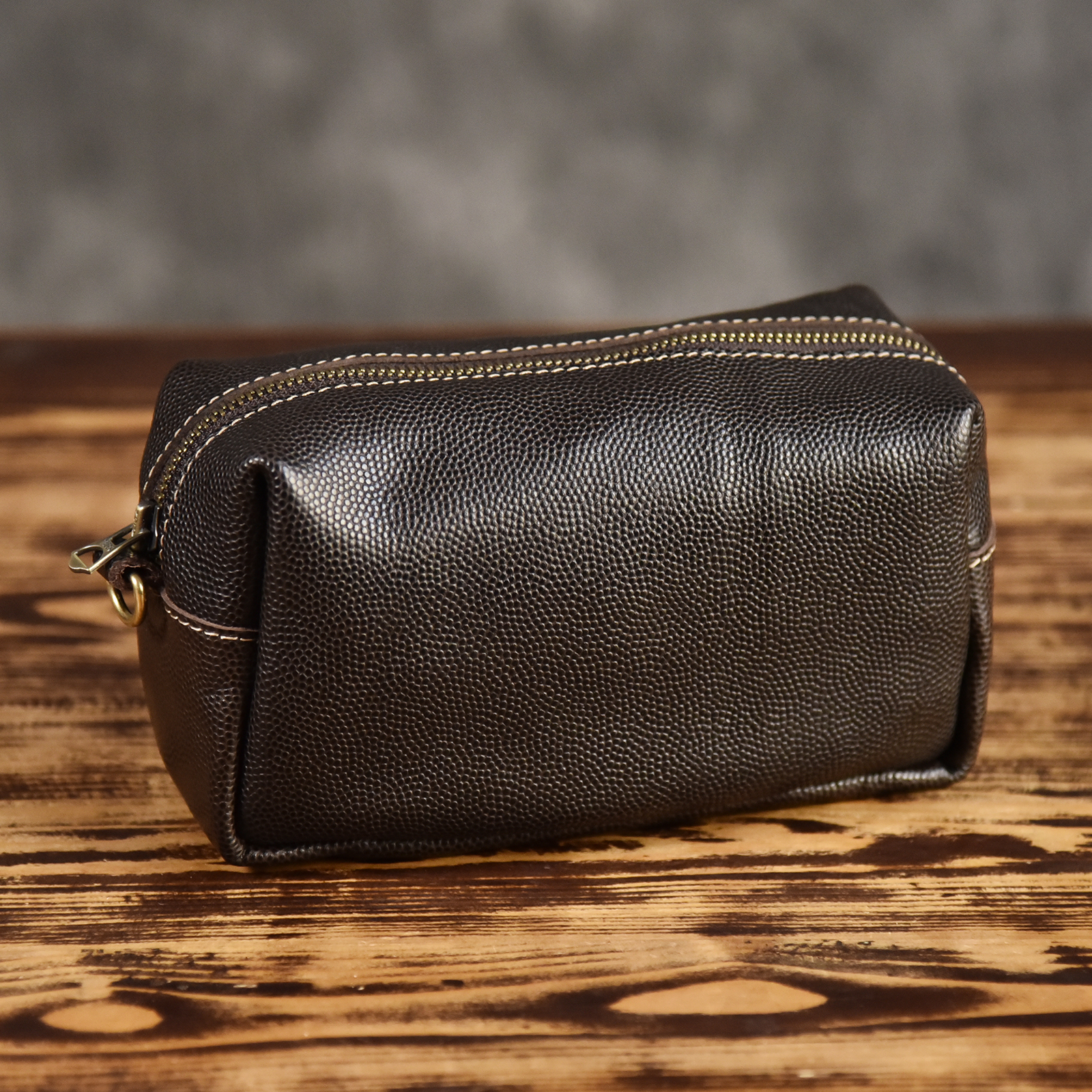 First layer cowhide storage bag leather zipper cosmetic bag data cable charger mobile charging earphone storage bag soft leather