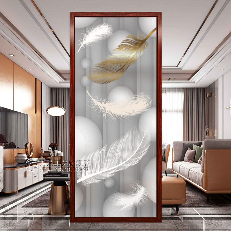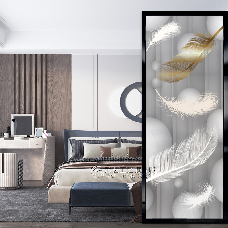 Custom Art Glass Living Room Compartment Wall Decoration Screen Double Sided Light Extravagant Feather in the family Xuanguan frosted light transmission