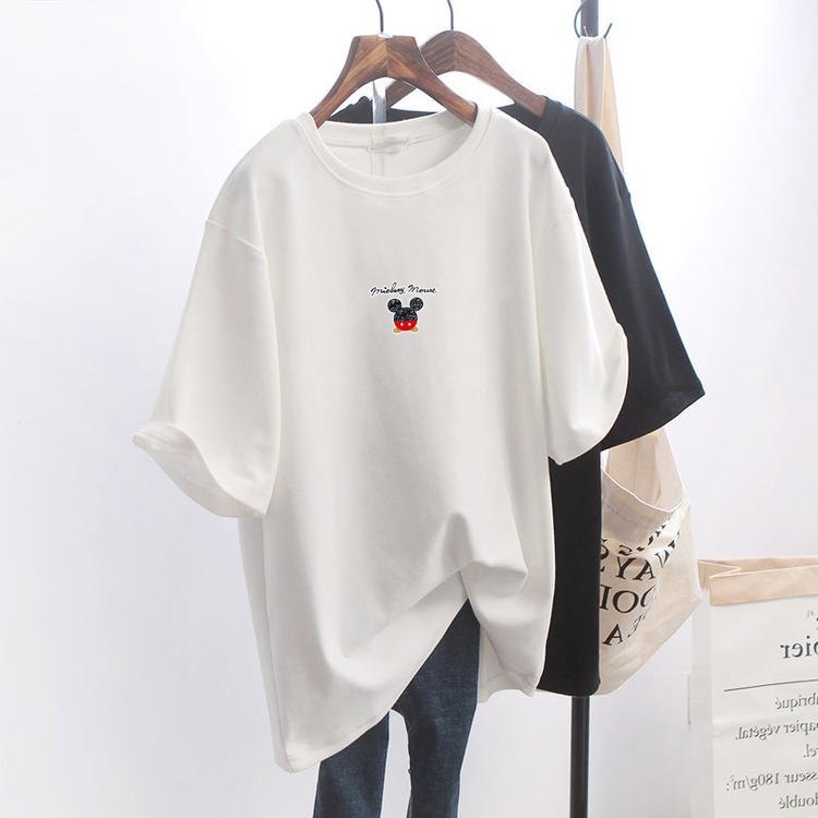 Anti-seasonal clearance Korean version of casual women loose size medium long model 100% cotton T-shirt short sleeves white T long sleeves look thin and versatile