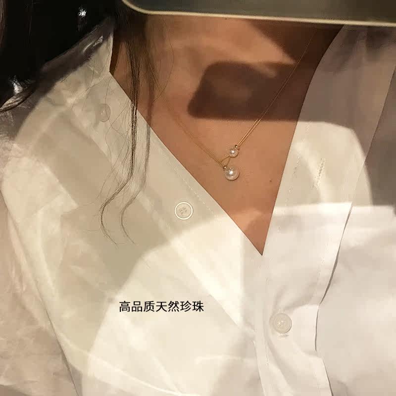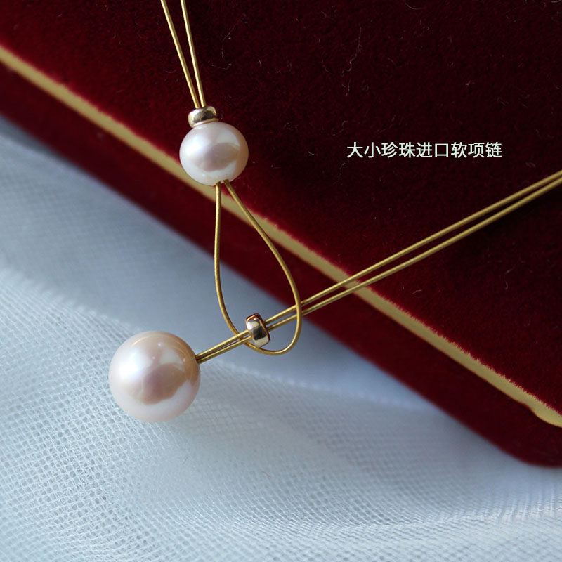 Large and small natural pearl necklace mother and child with the same style 8 5mm round and near round Japan imported gold wire 45 simple collar