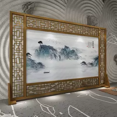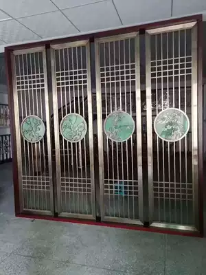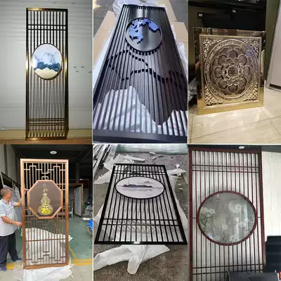 New Chinese stainless steel screen living room Villa decoration hollow flower grid metal titanium alloy home partition porch custom