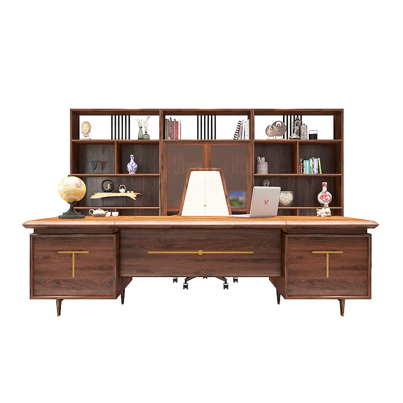 New Chinese style office desk and chair combination solid wood boss desk workbench atmospheric president desk executive desk office furniture - Taobao