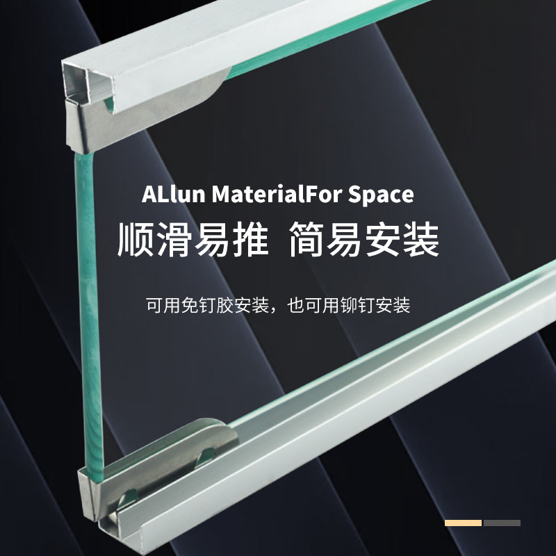 Glass push-pull sliding door track thickened 5mm display cabinet double chute sliding door Aluminum mountain word groove guide rail wheel accessories