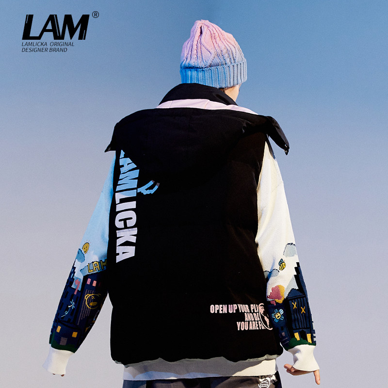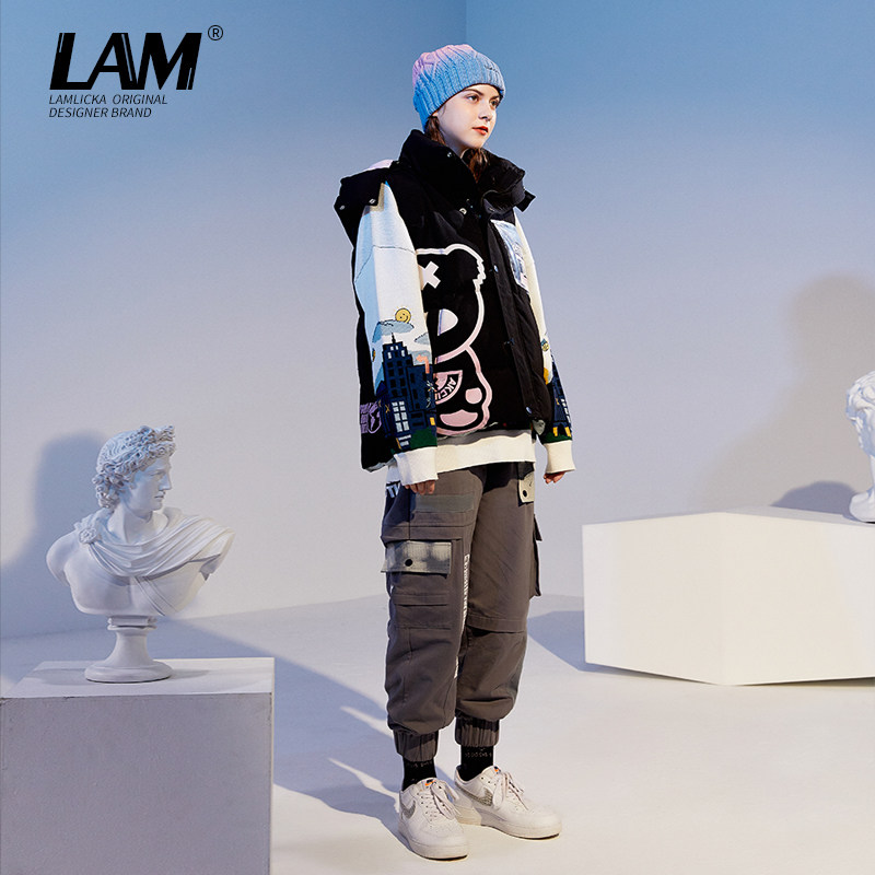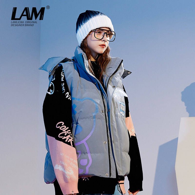 LALlicka Panda Even cap sleeveless horse chia cotton clothes male and female couples tide sign winter thickened large code cotton suit jacket-Taobao