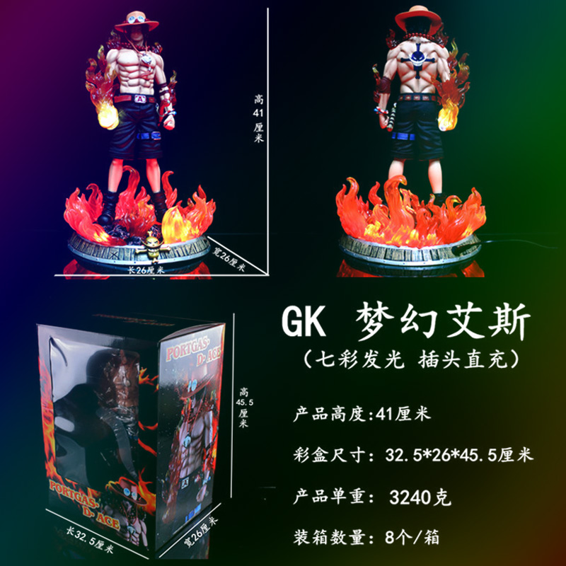 Dream Ace is about 41cm high and can be illuminated. Dream Cable is about 37cm high. Dream Luffy is about 36cm high and can be illuminated. Dream Luffy is about 36cm high.