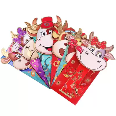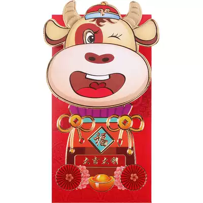 Three-dimensional cow Zodiac Chinese big red bag creative profit seal 2021 personality cute cartoon children gift Red Bag