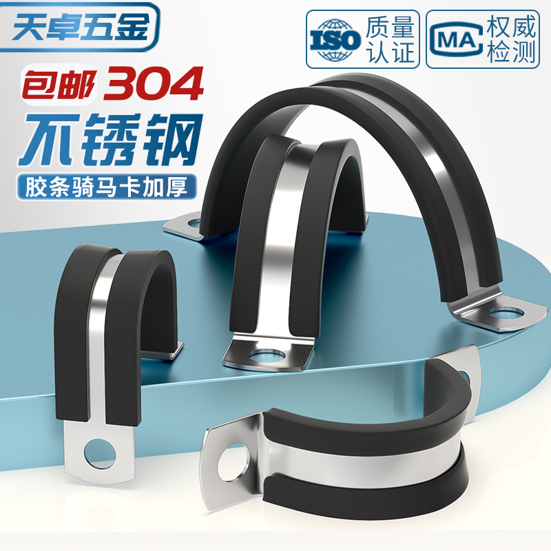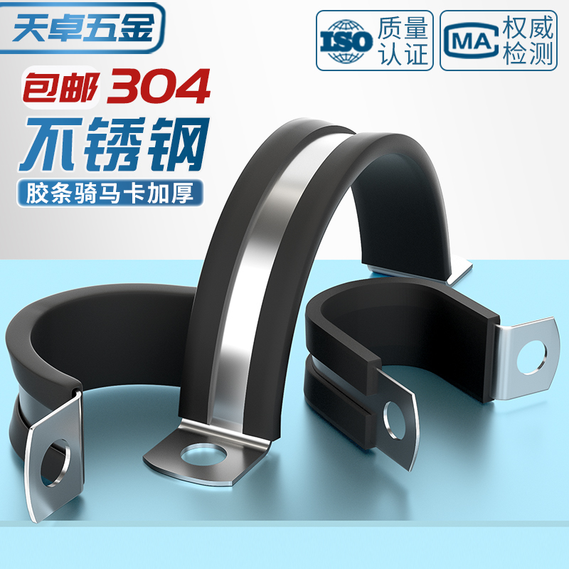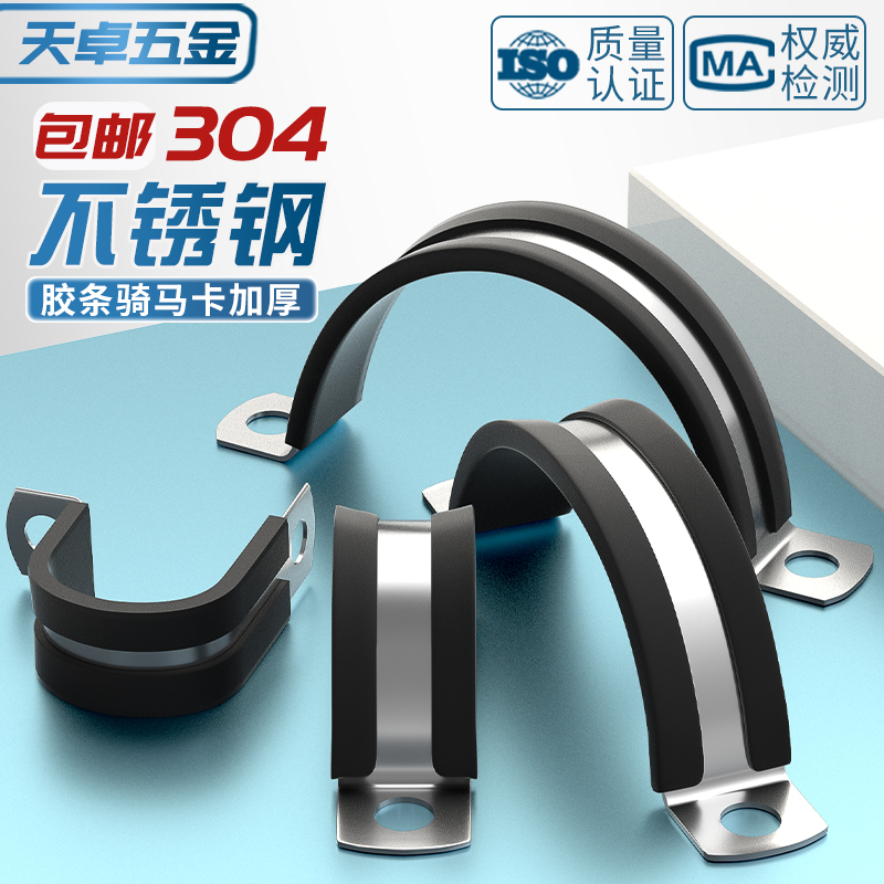 304 stainless steel with rubber strip horse riding card tube card with rubber strip tube bracket pipe buckle throat hoop water pipe clamp U R type hoop