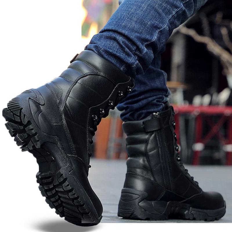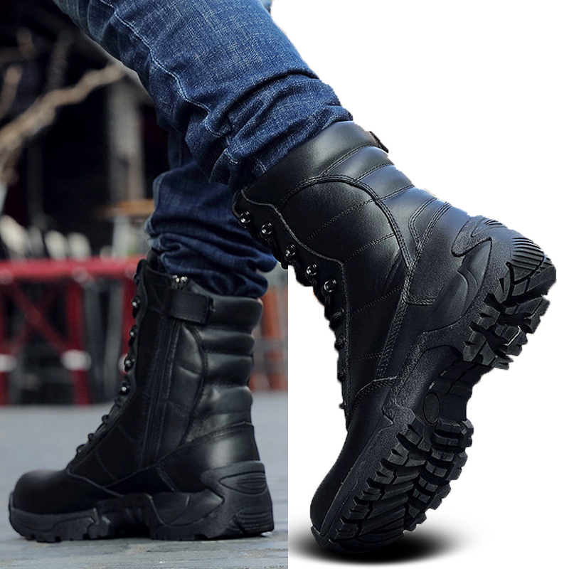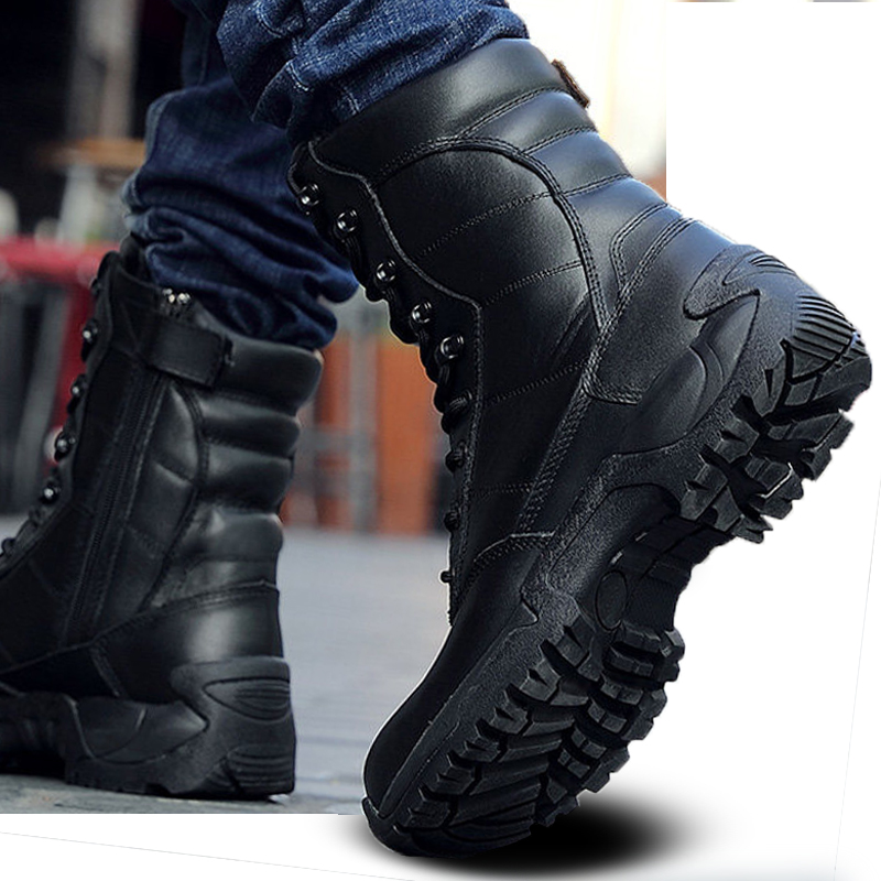Head Layer Bull Skin Martin Boots Man Winter Plus Suede Knight Genuine Leather Locomotive Boots Waterproof High Cylinder Tooling Boots Snowy Ground