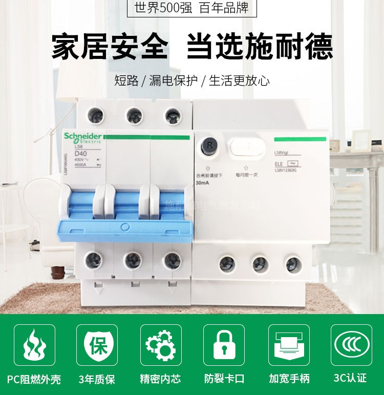 Schneider ls8 circuit breaker air switch with leakage protection switch circuit breaker integrated 2p63a leakage protection switch