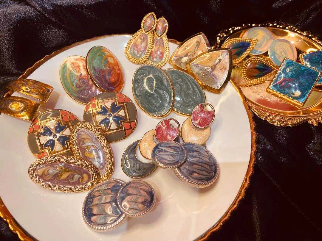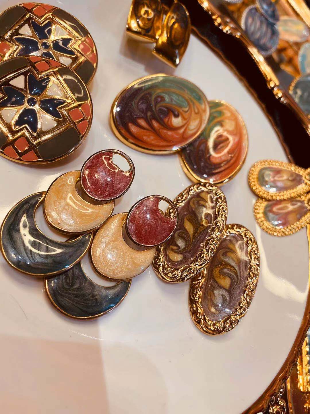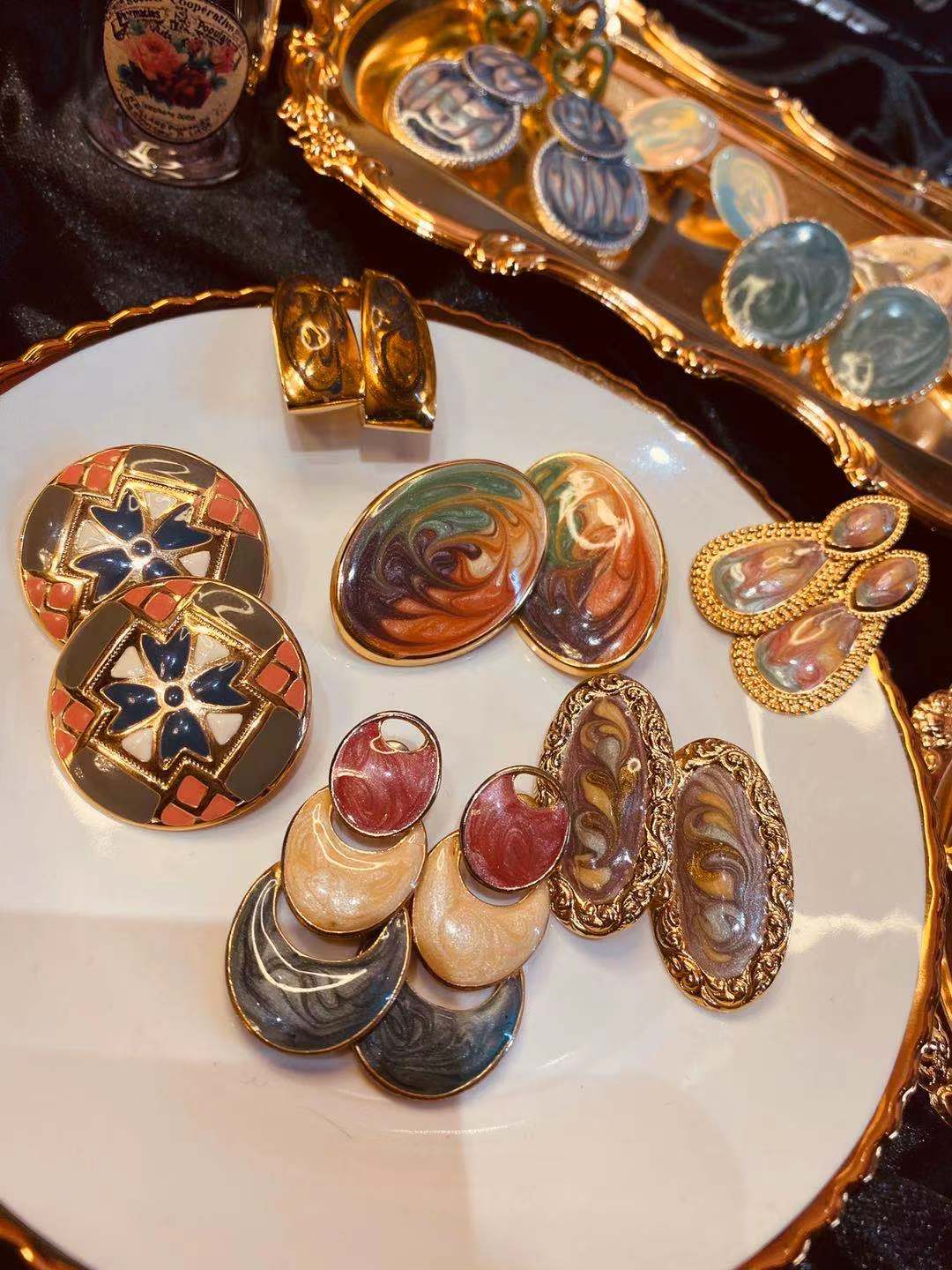 (Rich Man Bean) Vintage Earrings American Enamel Vintage Vintage Jewelry Ear Clip Ear Studs Europe (4)