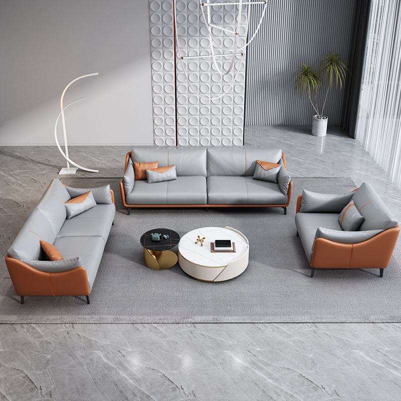Office sofa tea table combination suit Nordic genuine leather trio bit minimalist modern business reception office sofa