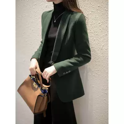 ROUJE POWER dark green blazer women's 2021 autumn/winter new casual wool wool woolen suit top