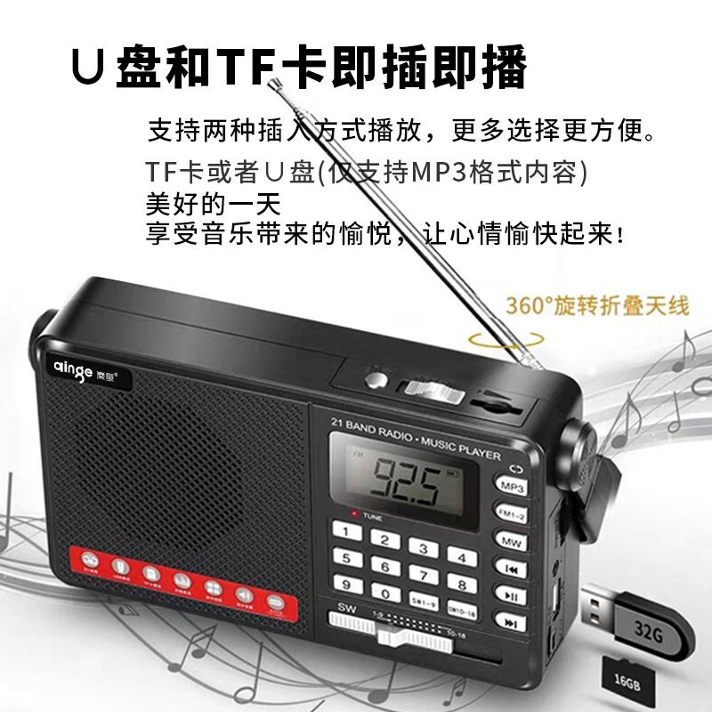 Full-band ultra-long standby dual 18650 card plug-in flash drive lighting breakpoint digital song selection high sensitivity radio