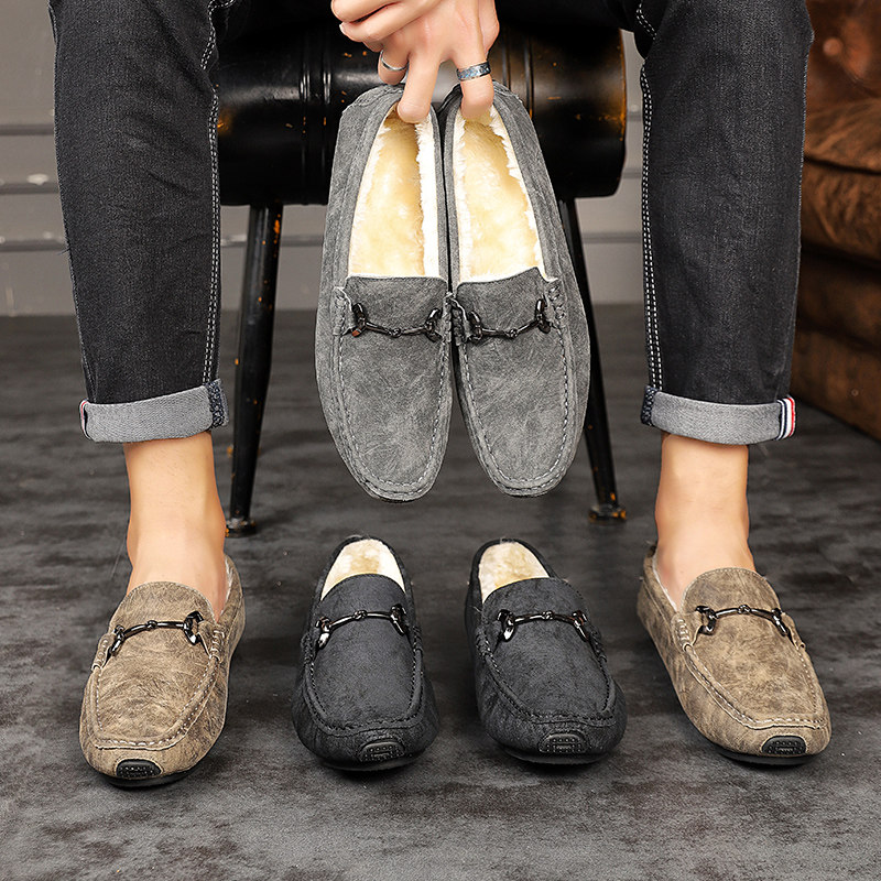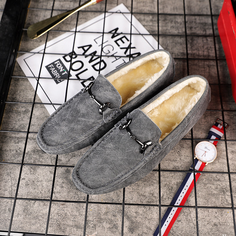 2022 winter bean-bean shoes men's gush leather Korean version Inron men's casual shoes cotton shoes warm and fury and soft bottom tide
