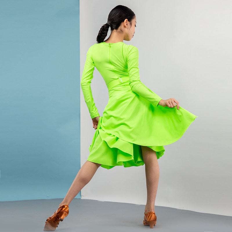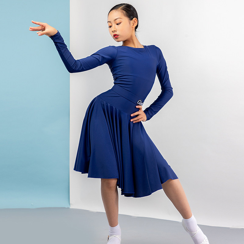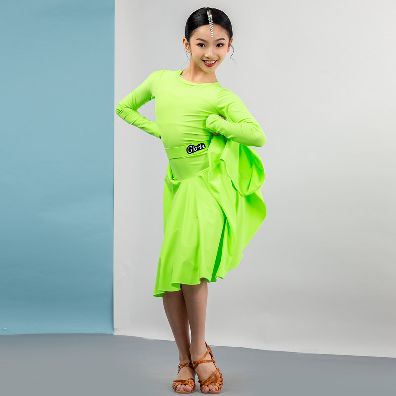Song Liberia Latin Dance Suit Female Toddler Children Long Sleeve Round Collar Custom Large Pendulum dress Training Xi Competition Stipulation Suit